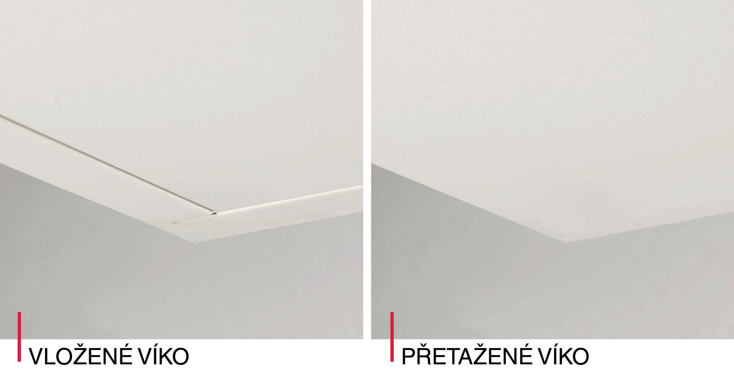 Vybírat můžeme ze dvou typů vík. Jednou z variant je víko zavírající se mezi obvodový rám – nebo-li víko vložené. Druhou, a za nás zajímavější variantou, je víko přetažené přes obvodový rám. Při zavření schodů víko schová obvodový rám, při pohledu zespod tedy nevidíme spáru vzniklou mezi obvodovým rámem a víkem. Nyní máme nově modely LUXE, které mají vyvinutou novou povrchovou úpravu. Její struktura se podobá omítkovému povrchu. Schody Vám tedy lépe splynou se stropem. Při kombinaci přetaženého víka a modelu LUXE si půdních schodu skoro nevšimnete.