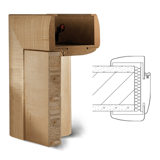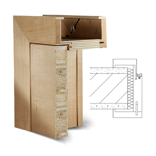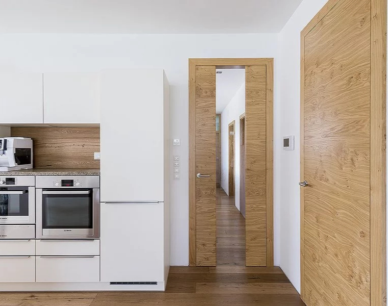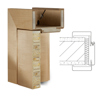 • V závislosti na kvalitě je křídlo dveří vyrobeno z dřevotřísky nebo vícevrstvého lepeného dřeva s vysoce kvalitními dýhami, berevným povrchem nebo lakem RAL / NCS,