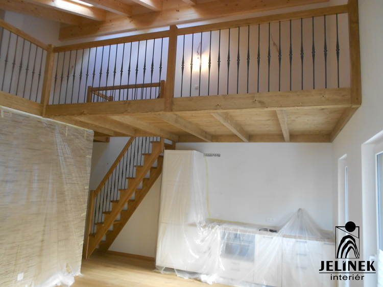 Klíčovým prvkem této realizace je spojení masivních stupňů a zábradlí s kulatými příčkami, které interiéru dodávají vzdušnost a moderní vzhled.