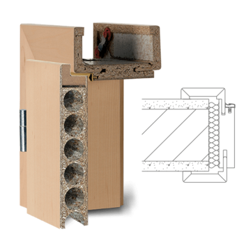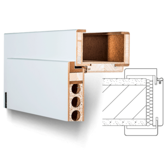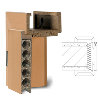 Zárubeň vyrobená z vícevrstvého lepeného masivního dřeva s vrchní vrstvou MDF, povrch dýhovaný nebo lakovaný z pravého dřeva podle RAL / NCS. Spoje obložek nahoře „na tupo“ (svislé části obložky průběžné), dveřní panty 3dílné, protiplech zámku je 4 směrně nastavitelný, standardní profil C (hrana) , Šířka panelu 75 mm, rozsah nastavení +/- 5 mm, kompletně smontované a nalakované.