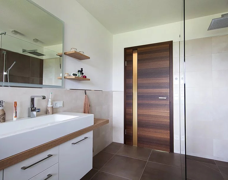 Zárubeň vyrobená z vícevrstvého lepeného masivního dřeva s vrchní vrstvou MDF, povrch dýhovaný nebo lakovaný z pravého dřeva podle RAL / NCS. Dveřní panty 3dílné, protiplech zámku je 4 směrně nastavitelný, standardní profil C (ostrý), šířka obložky 75 mm a designové obložení 60 mm „bezfalcový“ rozsah nastavení +/- 5 mm, kompletně smontovaná a lakovaná.