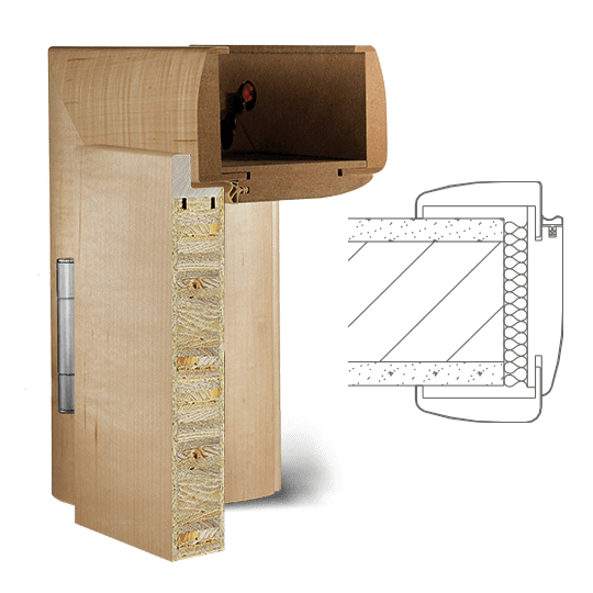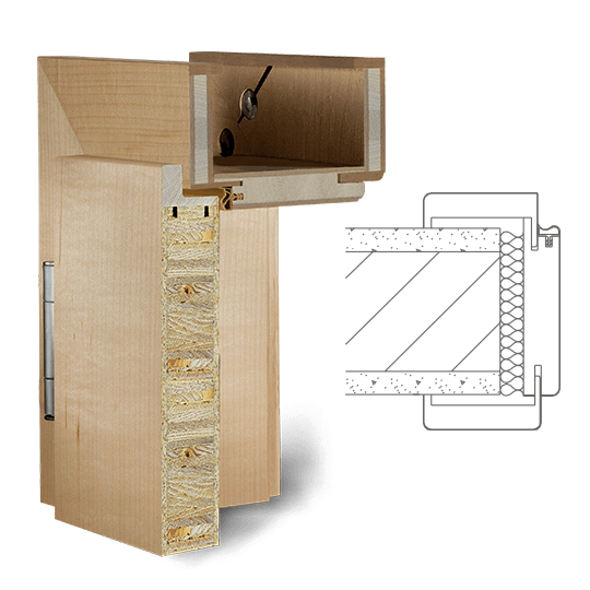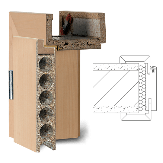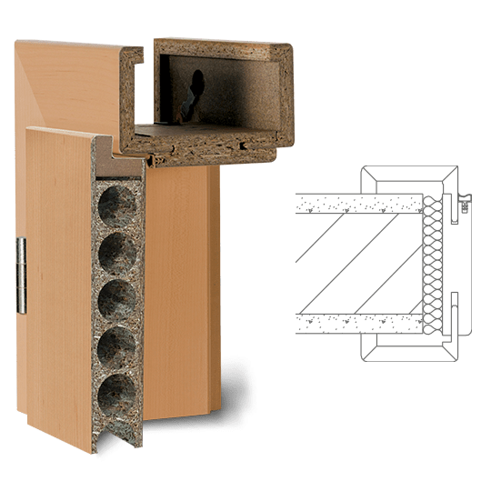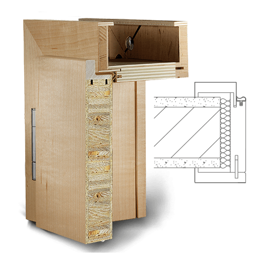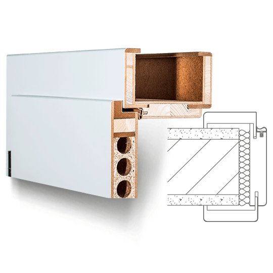 Zárubeň vyrobená z vícevrstvého lepeného masivního dřeva s vrchní vrstvou MDF, povrch dýhovaný nebo lakovaný z pravého dřeva podle RAL / NCS. Spoje obložek nahoře „na tupo“ (svislé části obložky průběžné), dveřní panty 3dílné, protiplech zámku je 4 směrně nastavitelný, standardní profil C (hrana) , Šířka panelu 75 mm, rozsah nastavení +/- 5 mm, kompletně smontované a nalakované.