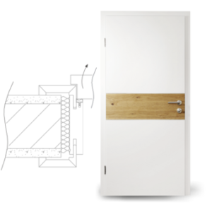 Zárubeň vyrobená z vícevrstvého lepeného masivního dřeva s vrchní vrstvou MDF, povrch dýhovaný nebo lakovaný z pravého dřeva podle RAL / NCS. Obložka a vnitřní futro bombírováno, 3dílné dveřní závěsy, n protiplech zámku je 4 směrně nastavitelný, šířka obložky 75 mm, rozsah nastavení +/- 5 mm , kompletně smontované a nalakované.