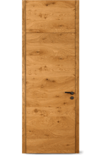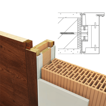 Rám neviditelný zabudovaný v ostění a dveřní křídlo v jedné rovině se stěnou, dveřní křídlo se otevírá ve směru do ostění stěny (reverzní). Hliníkový rám FLAT-IN jako zapuštěný rám pro omítku a nebo sádrokarton včetně omítkové sítě a montážních držáku. Sada lišt z masivního dřeva a s dveřní panty Tectus 240, protiplech pro magnetickou západku, hliníkový rám je umístěn v přední části zarovno s omítkou.