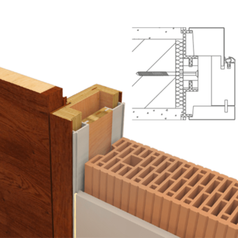 Rám a dveřní křídlo v jedné rovině se stěnou, dveřní křídlo se otevírá standardně, zarubeň na pantové straně 60 mm a na záklopové straně 45 mm, rám z masivního dřeva lepený v několika vrstvách, hliníkové dveře Tectus 340 panty, stříbrná, protiplech pro magnetickou západku, rozsah nastavení 0 mm, nutná montáž kontra rámu před omítkou.