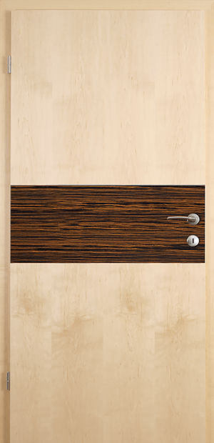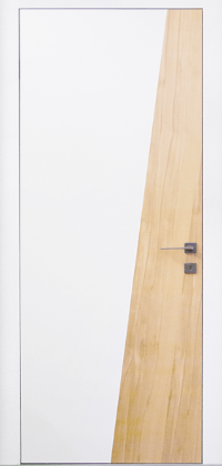 Dveřní křídlo s kvalitní konstrukcí a šikmou dýhovou vložkou, kterou je možné orientoval vertikálně/horizontálně, nebo lze kombinovat se sklem, nebo s neprůhledným lakovaným povrchem RAL/NCS. Šikmý sklon působí perspektivně a kosmopolitně, představuje moderní design dveří – volitelné jsou samozřejmě i dveřní systémy a kování. Cena od 31.200,- bez DPH.
