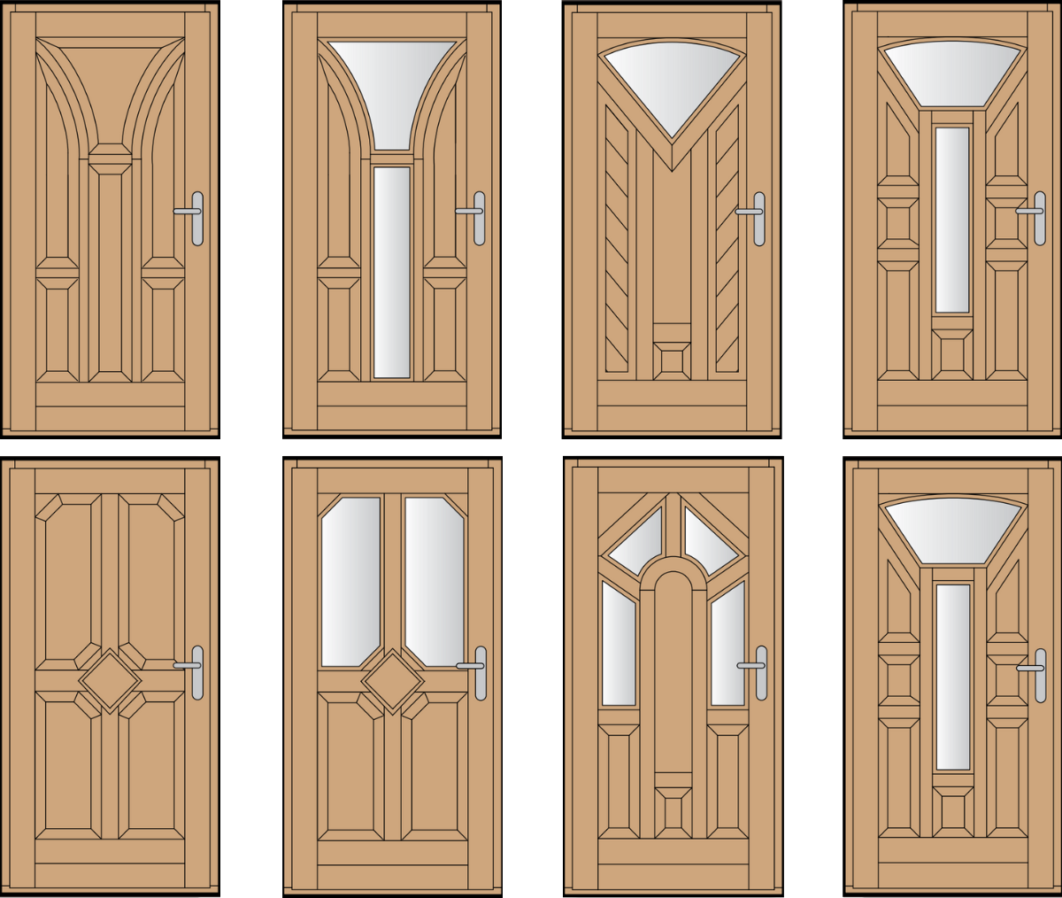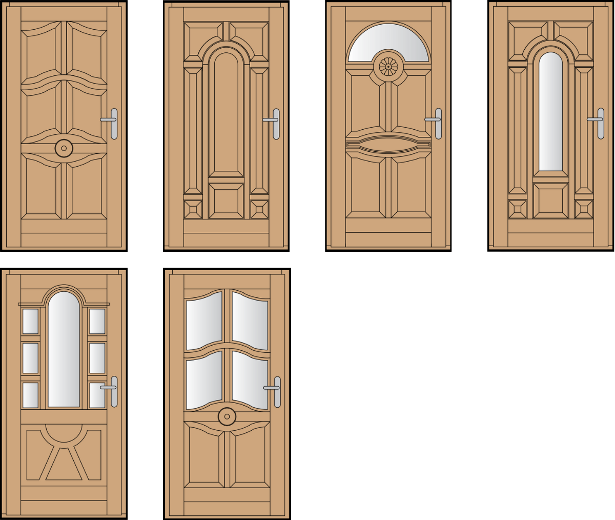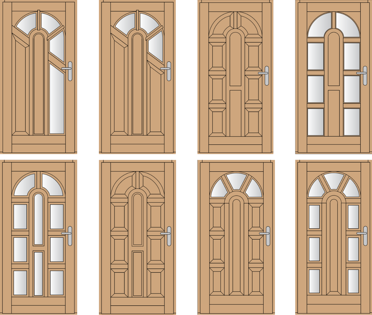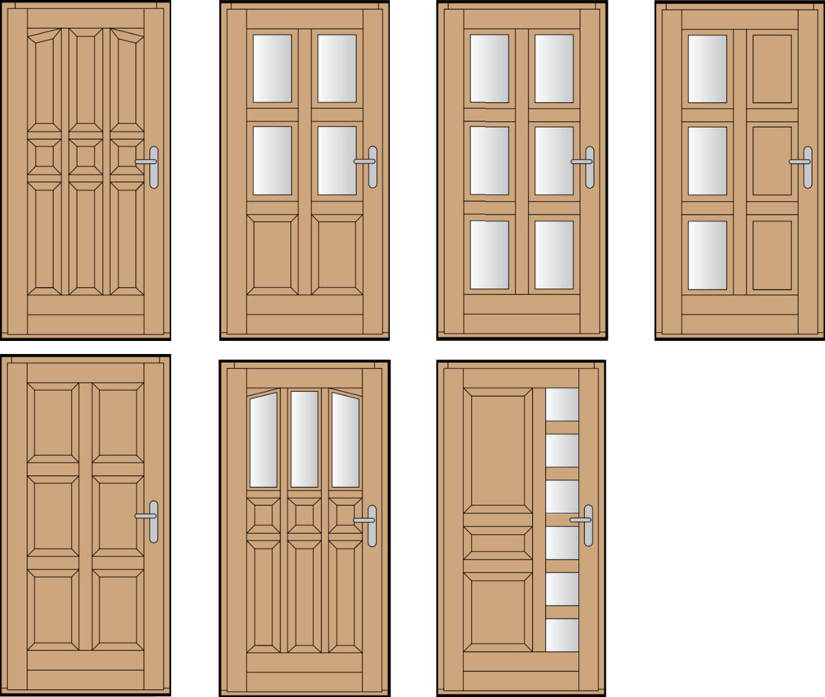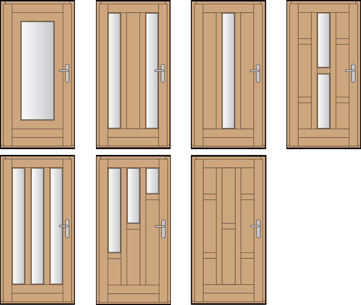 Tato varianta dveří nabízí možnost atypické šířky dveřního křídla, a samozřejmostí jsou také bohaté možností prosklení a různých zdobných prvků.