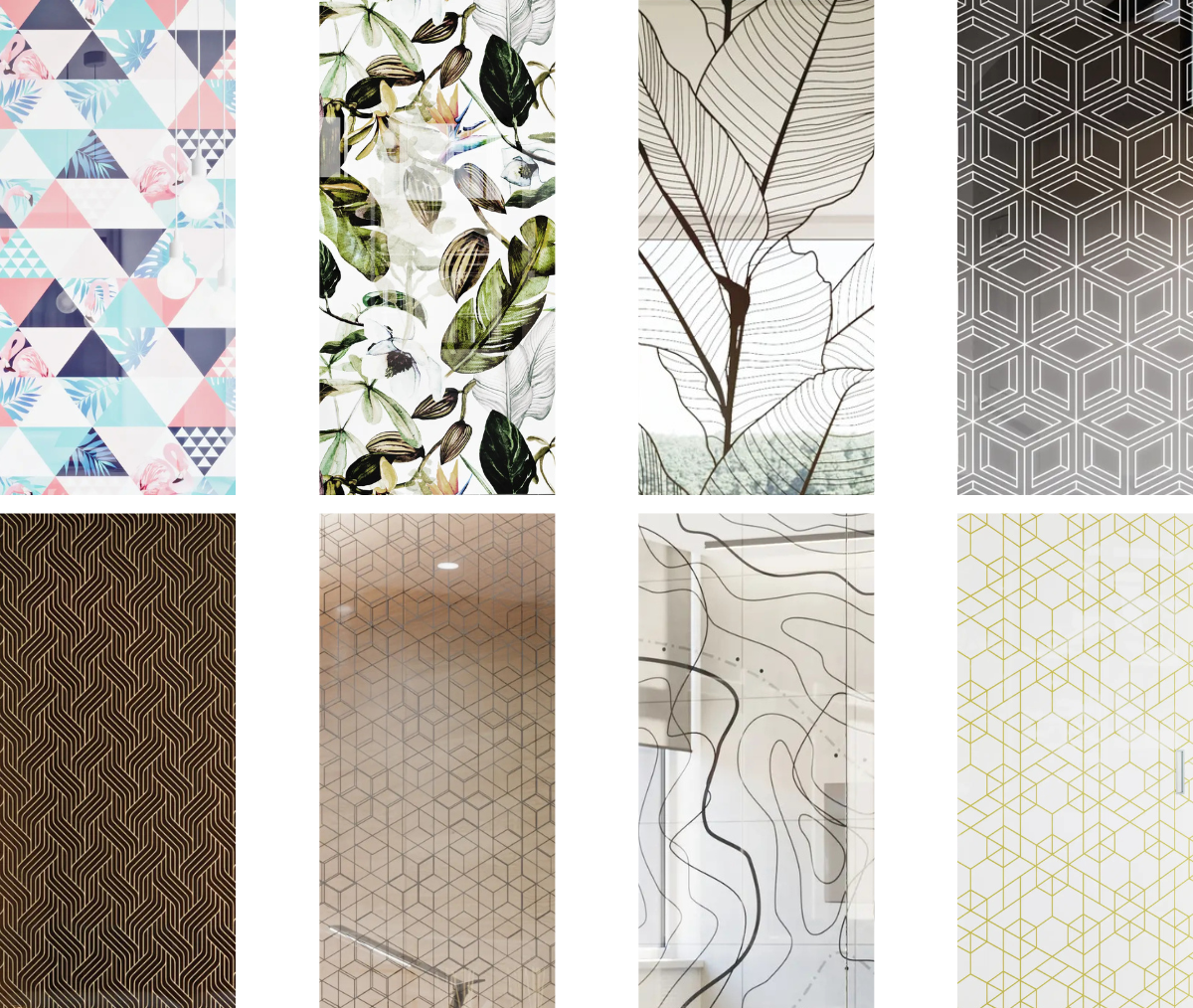 Sklo s grafickým dekorem. Je vyráběno ve formě jedné vrstvy skla. Běžně se používá například na obklady stěn. Bezpečnostní fólie s grafickým motivem se za vysokých teplot zalaminuje k jedné skleněné desce. Na sklo si můžete nechat natisknout libovolný motiv.