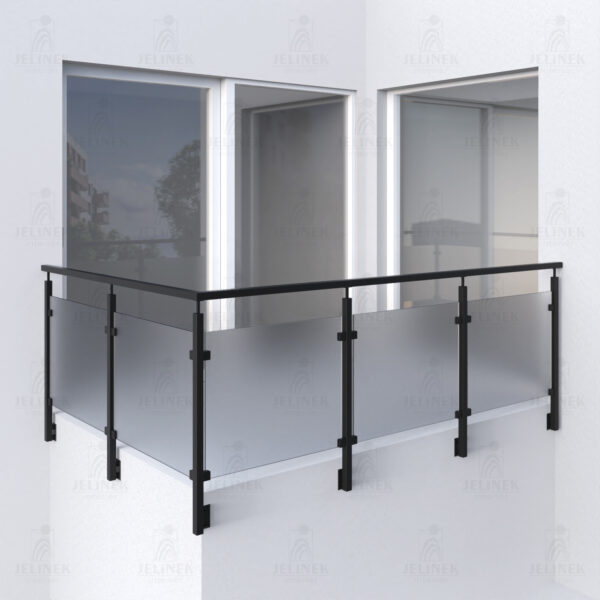 Černé ocelové hranaté zábradlí s mléčným sklem