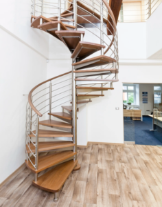 Námi vyrobené a namontované prostorově úsporné točité schody do patra.