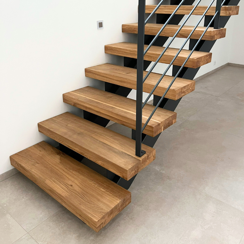Zubaticová schodnice dodává schodišti dynamický vzhled a kombinuje se s různými materiály, jako je dřevo nebo sklo. Hodí se do rodinných domů nebo bytů.