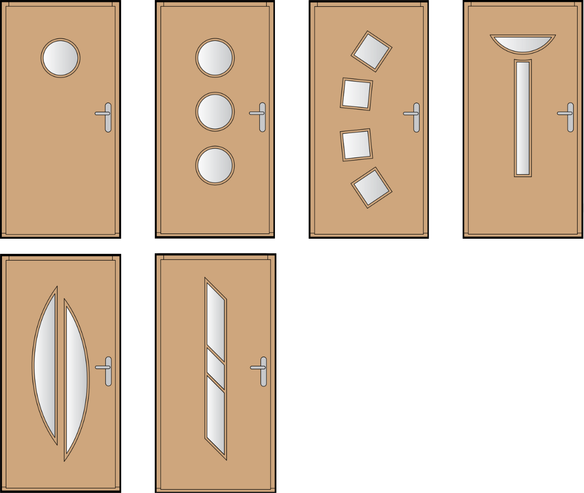 Modelová řada "I" s kruhovými, či atypicky rozmístěnými prosklenými výřezy jsou skvělým elegantním řešením pro většinu moderních staveb. Povrch dveří lze lakovat do libovolného odstínu dle škály RAL. Dostatek prosklené plochy garantuje propustnost dostatku venkovního světla do předsíně, či chodby.