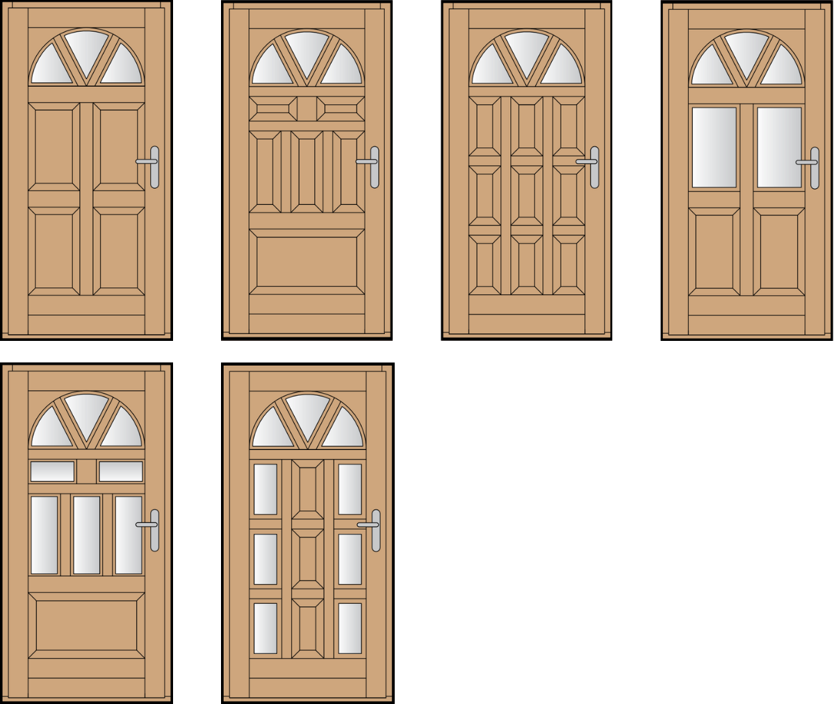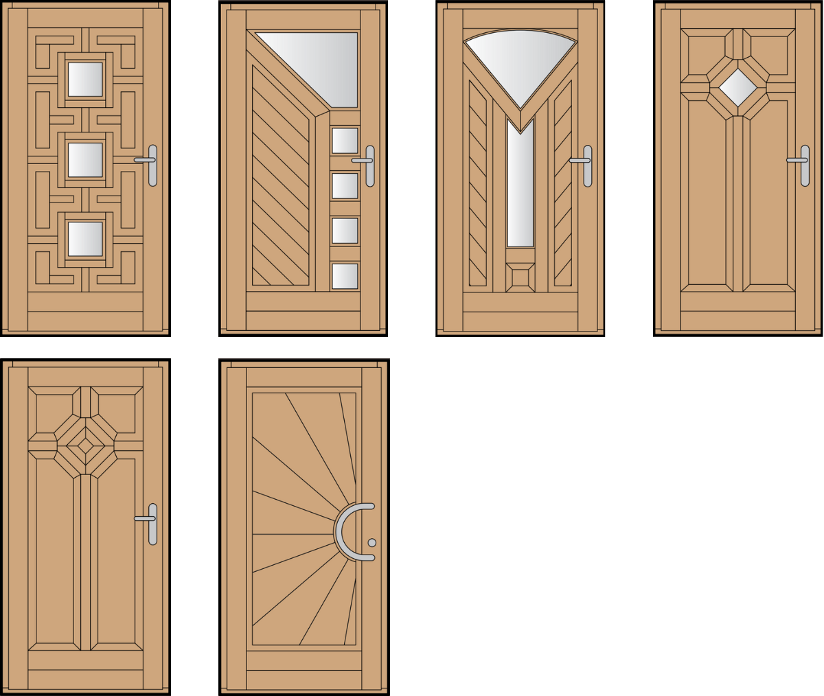 Tato varianta dveří nabízí možnost atypické šířky dveřního křídla, a samozřejmostí jsou také bohaté možností prosklení a různých zdobných prvků.