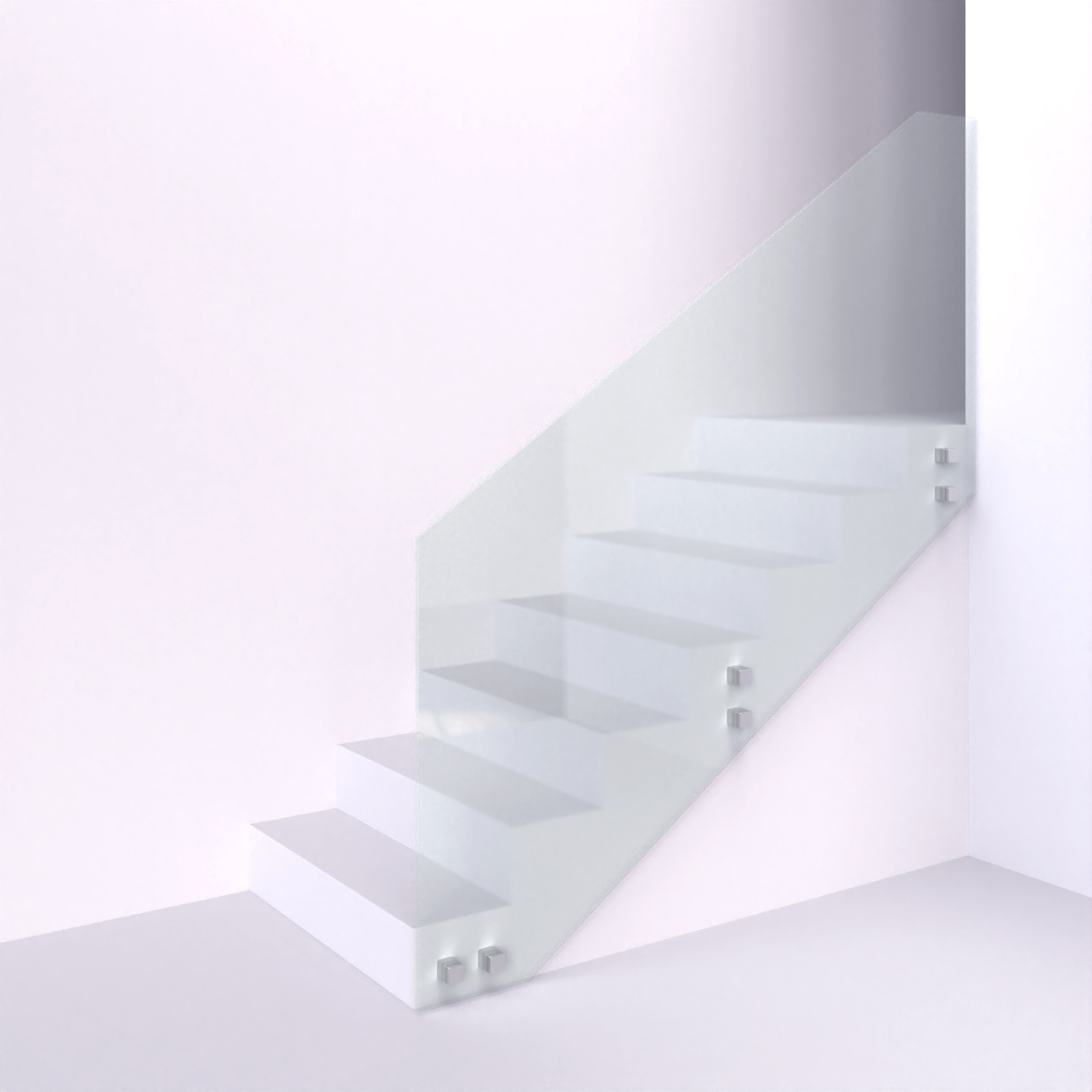 Celoskleněné zábradlí kotvené do stupňů slibuje minimalistický design a maximální bezpečnost. Perfektní řešení pro schodiště.
