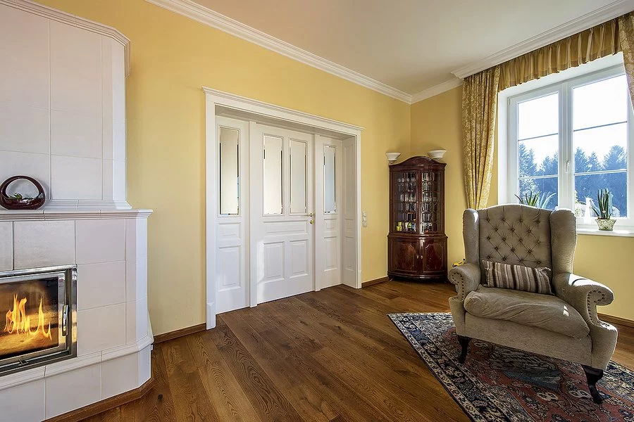 Otevírání do prostoru vs. posuvné dveře. Posuvné dveře jsou ideální pro menší prostory, kde není dostatek místa na otevírání klasických dveří.
