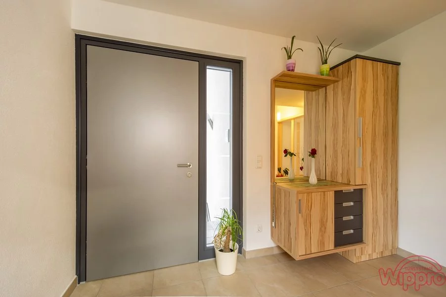 Vchodové dveře Wippro se vyznačují robustní konstrukcí dveřního křídla, která kombinuje vysokou bezpečnost, dlouhou životnost a moderní design. Dveřní křídlo je tvořeno vícevrstvým jádrem se stabilizačními a izolačními prvky, díky čemuž dveře dosahují výborných hodnot v tepelné i zvukové izolaci. Povrchová úprava z odolných materiálů chrání dveře proti povětrnostním vlivům a zajišťuje snadnou údržbu.