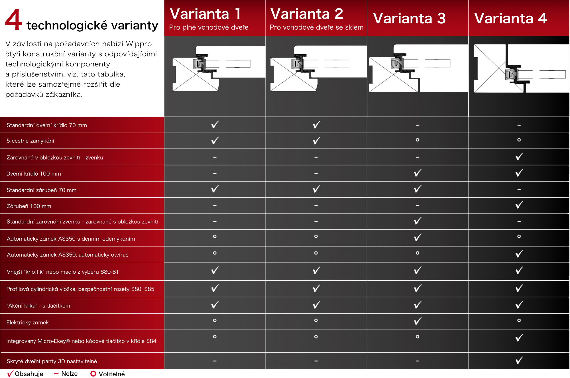 Konstrukční varianty dveřního křídla vchodových dveří Wippro