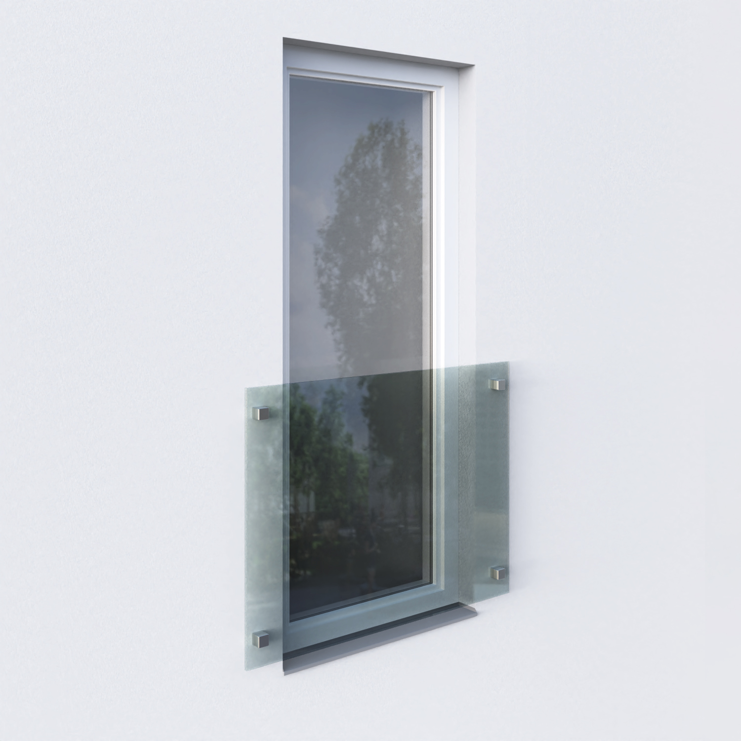 Na přání zákazníka jsme realizovali skleněné venkovní zábradlí k francouzským oknům do fasády rodinného domu.