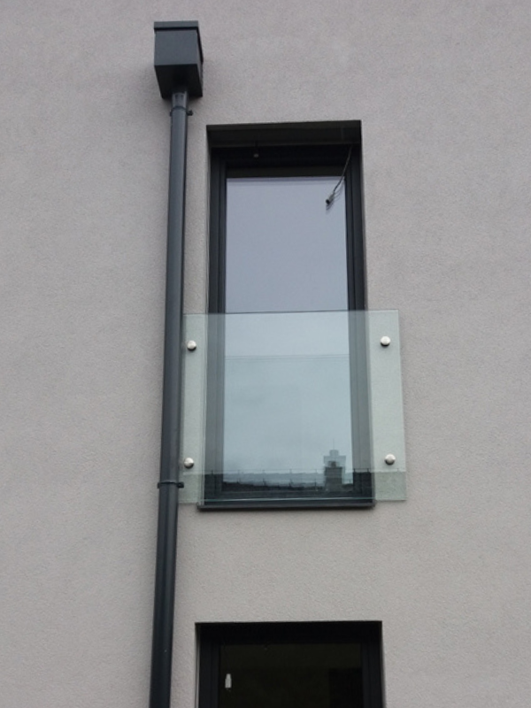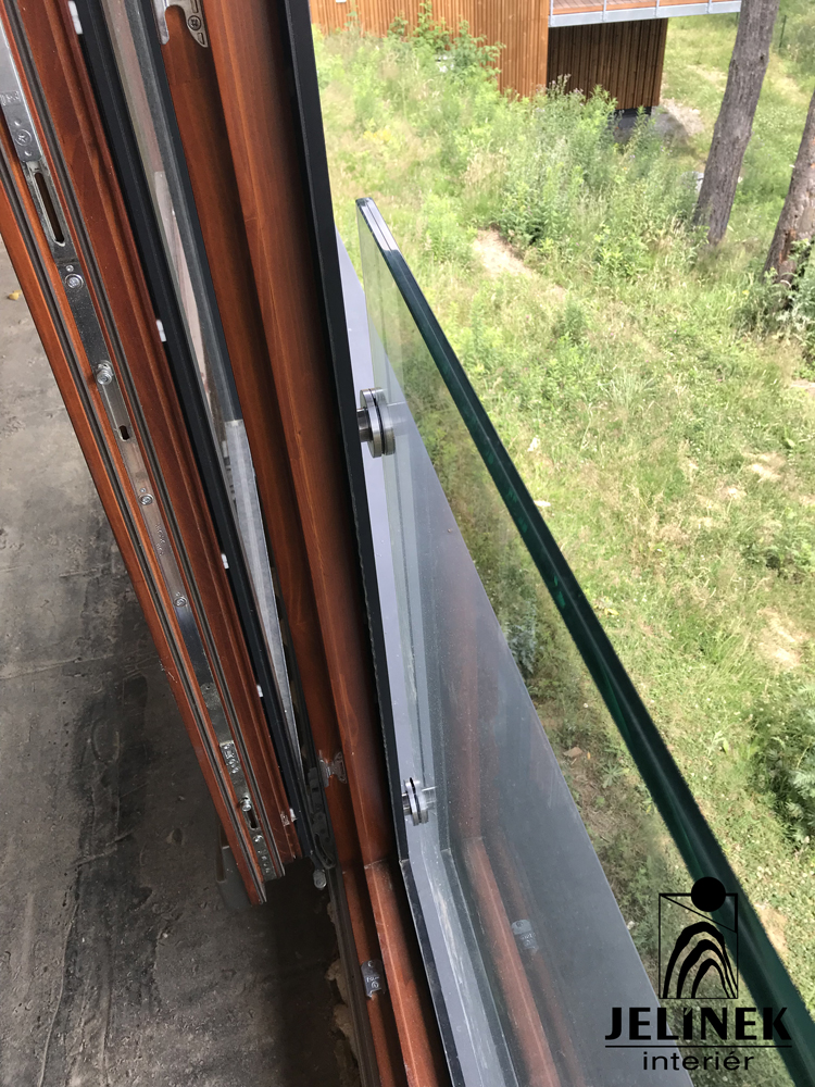 Celoskleněné zábradlí na kulaté terče k oknu