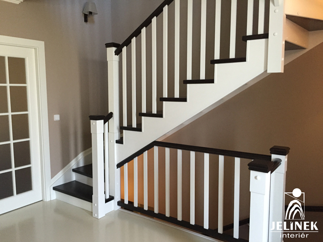 Klíčovým prvkem této realizace je spojení masivních stupňů a zábradlí s kulatými příčkami, které interiéru dodávají vzdušnost a moderní vzhled.