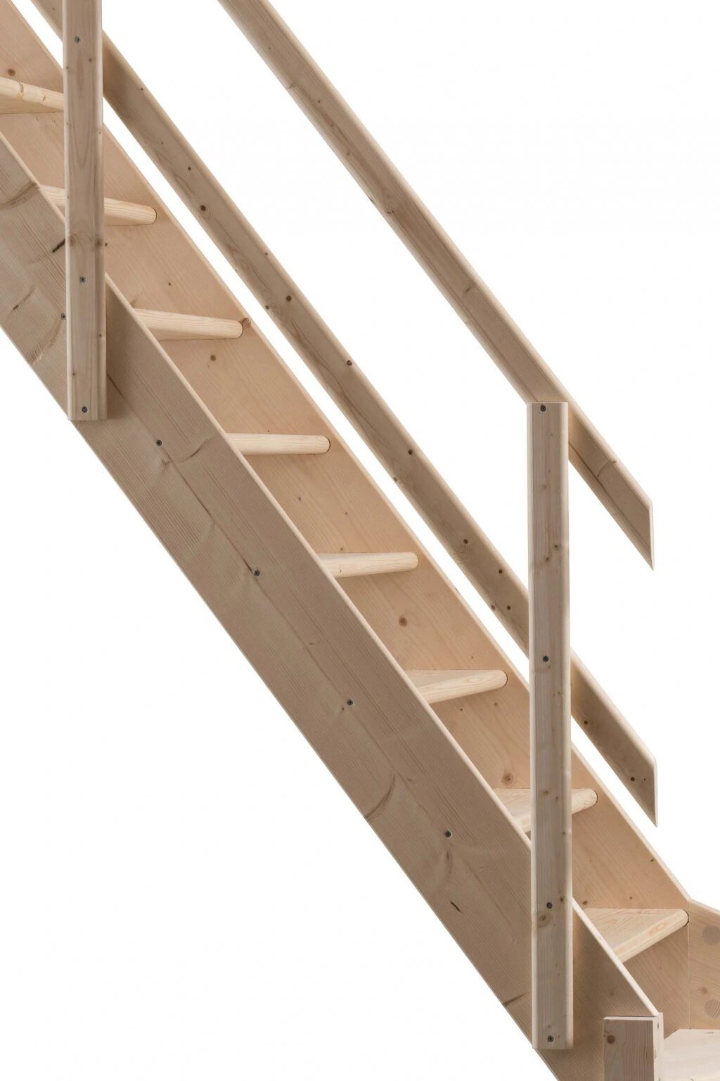 Smrkové schody Bravo s možností příplatkového zábradlí. Nakoupíte se slevou v našem e-shopu.