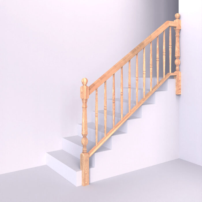 Honosné dřevěné zábradlí s hranatými sloupky a soustruženou svislou výplní navozuje tradiční atmosféru interiéru. Vybrat si můžete z různých dřevin a povrchových úprav, včetně moření a tónování. Místo a vzhled frézování je možné přizpůsobit dle vašeho přání. Zakázková výroba v Česku.