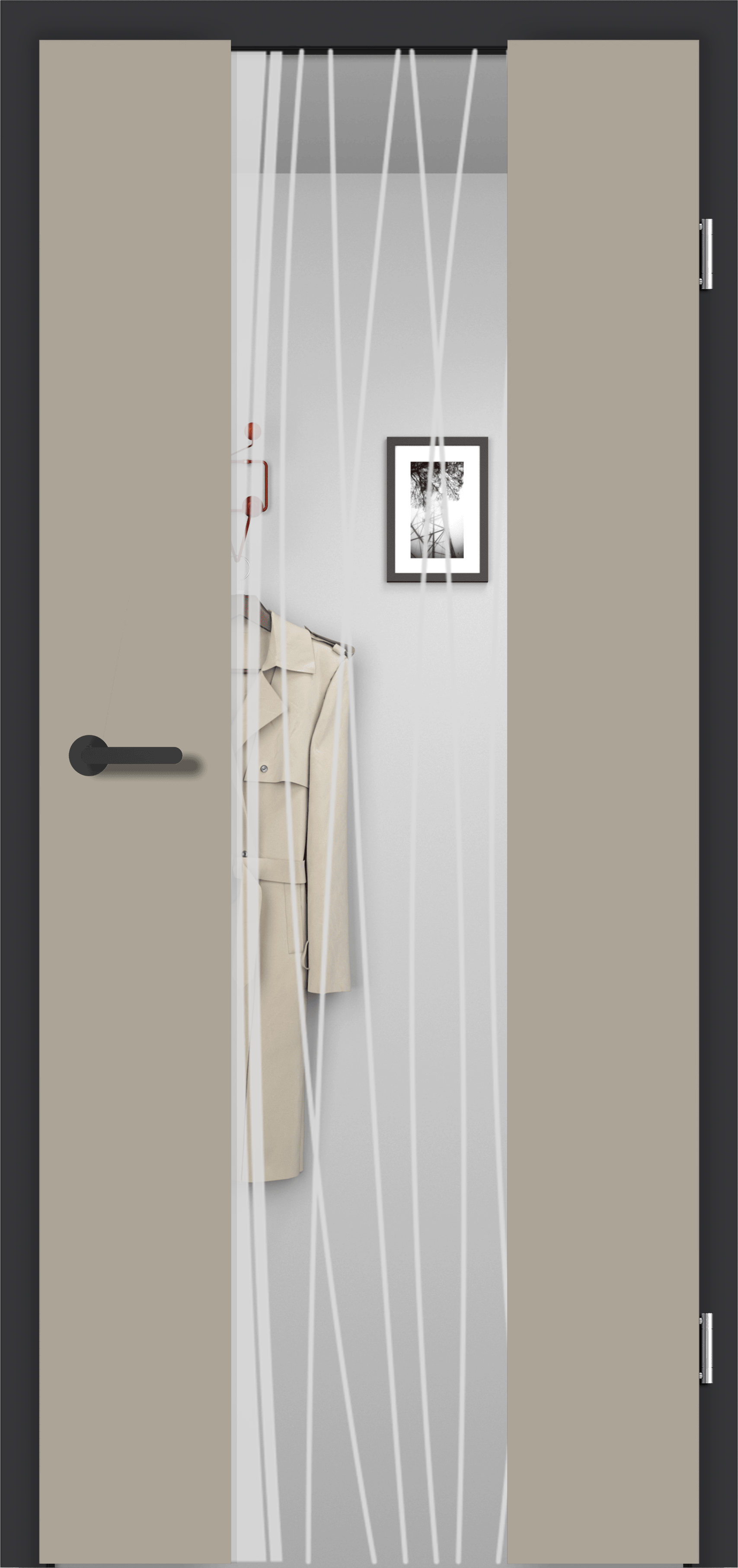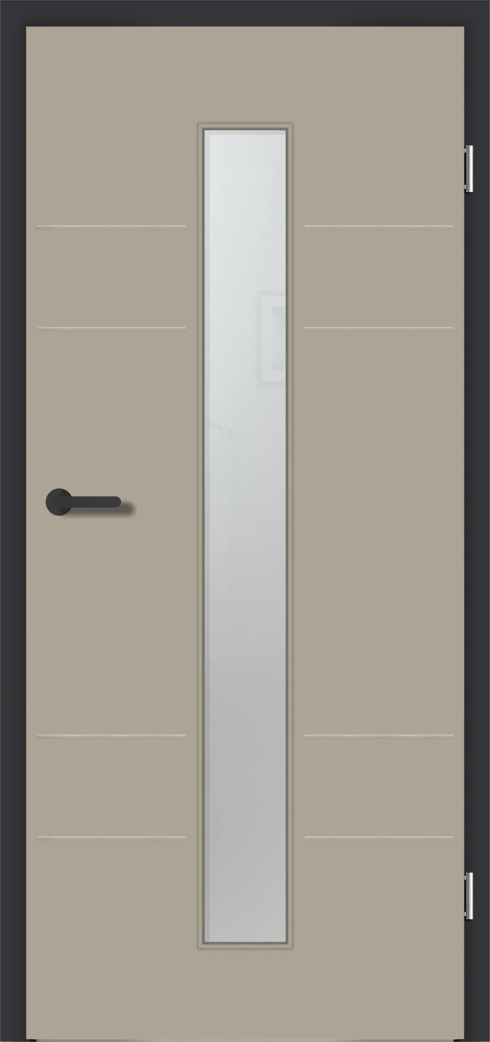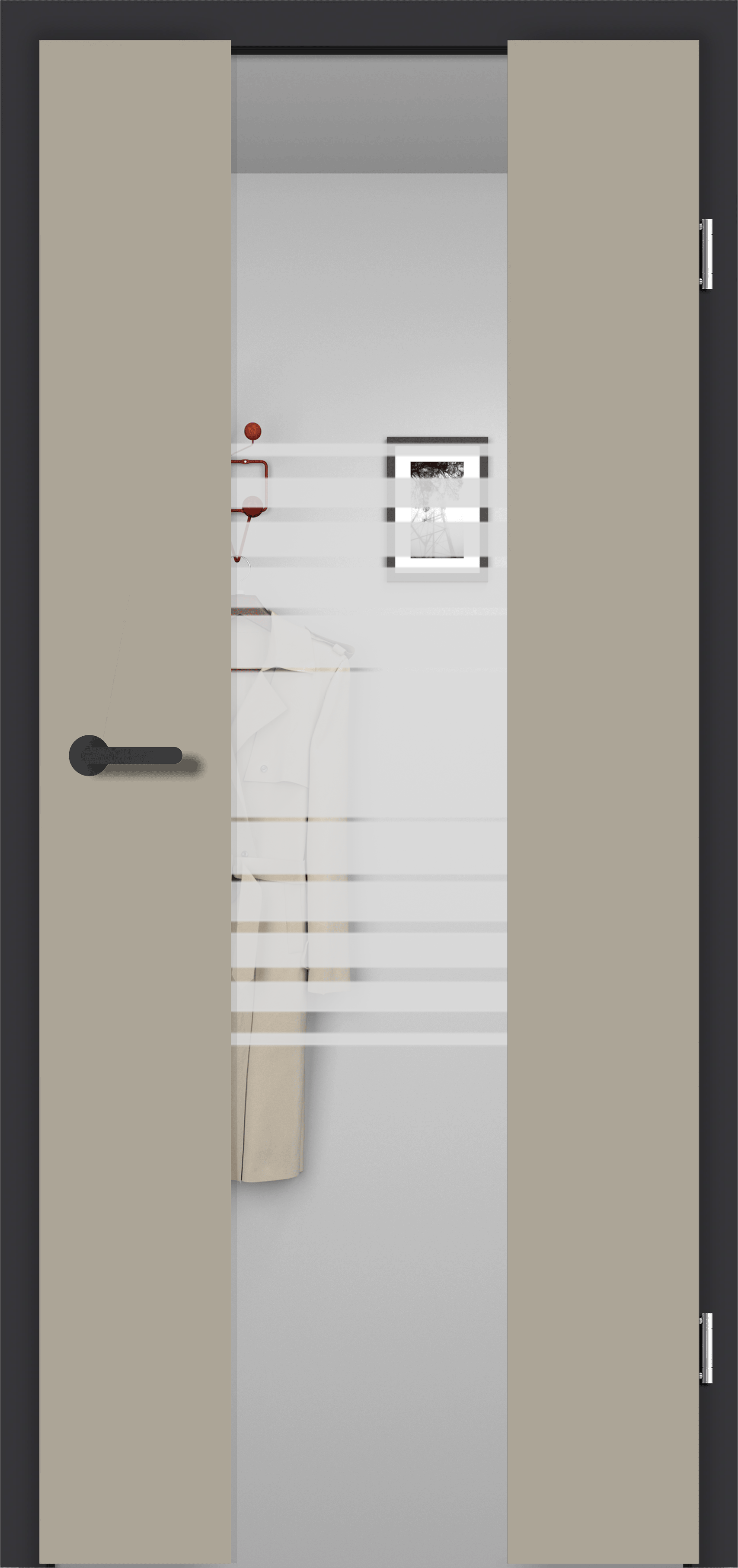 Elegantní interiérové dveře se stylově vsazenými černými proužky, které jsou odrazem dnešního moderního stylu bydlení.
