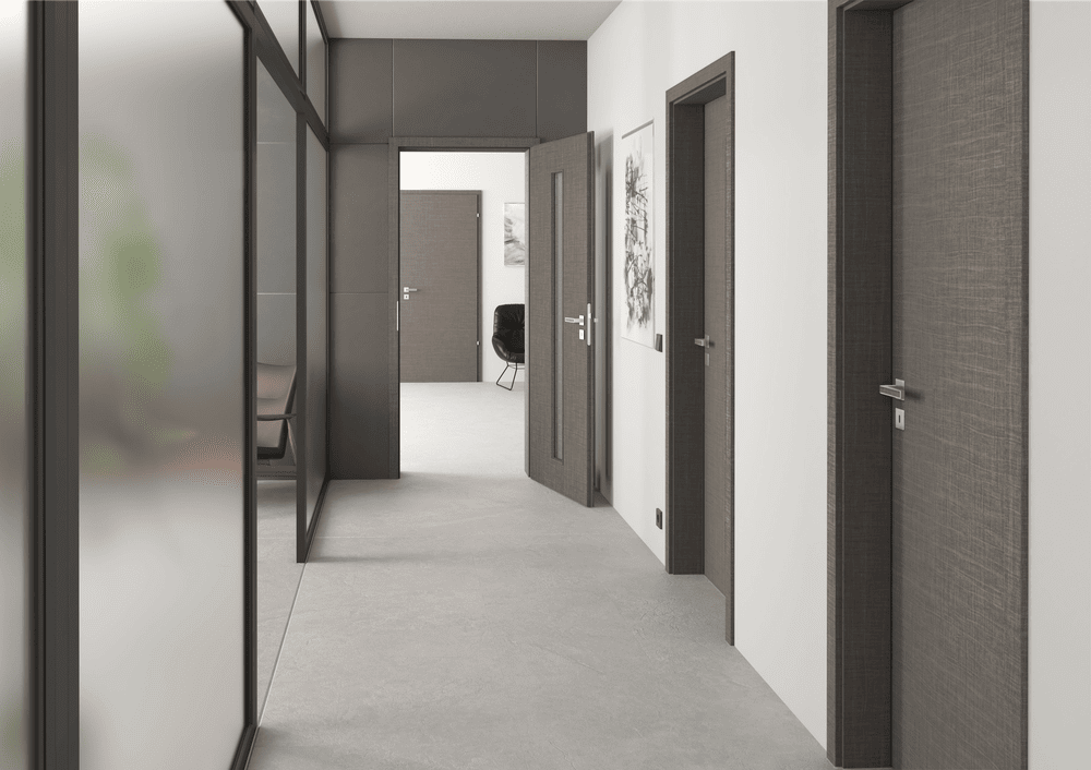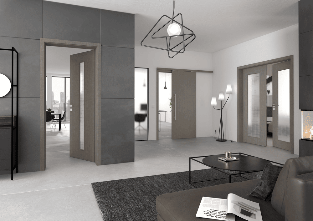 Realizace interiérových dveří PRÜM – Světlý dub, tmavý dub a celoskleněné