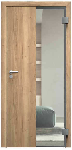 Realizace interiérových dveří PRÜM – Světlý dub, tmavý dub a celoskleněné