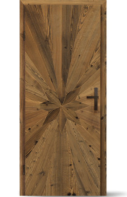 Sternstein dělá obzvláště působivý dojem se motivu hvězdy ve volitelném druhu recyklovaného dřeva. Za dveřmi Sternstein se obvykle skrývá tradiční, retro nebo rustikální interiér – tak či onak působí mimořádně útulně. Sternstein může být také navržen jako vchodové dveře nebo jako posuvné dveře.