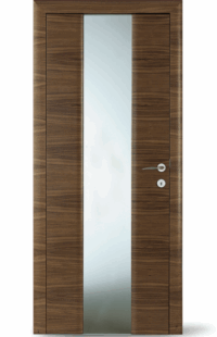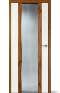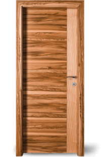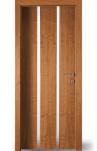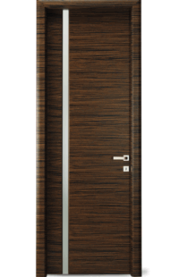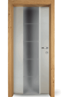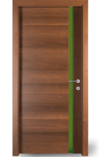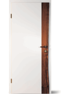 Vysoce kvalitní dveře s barevnou vložkou v jedné rovině s povrchem. Volitelně může být vložka navržena také s vlnovým frézováním (dřevo nebo barevný lak) nebo se vzhledem surové dřevěné hrany.
