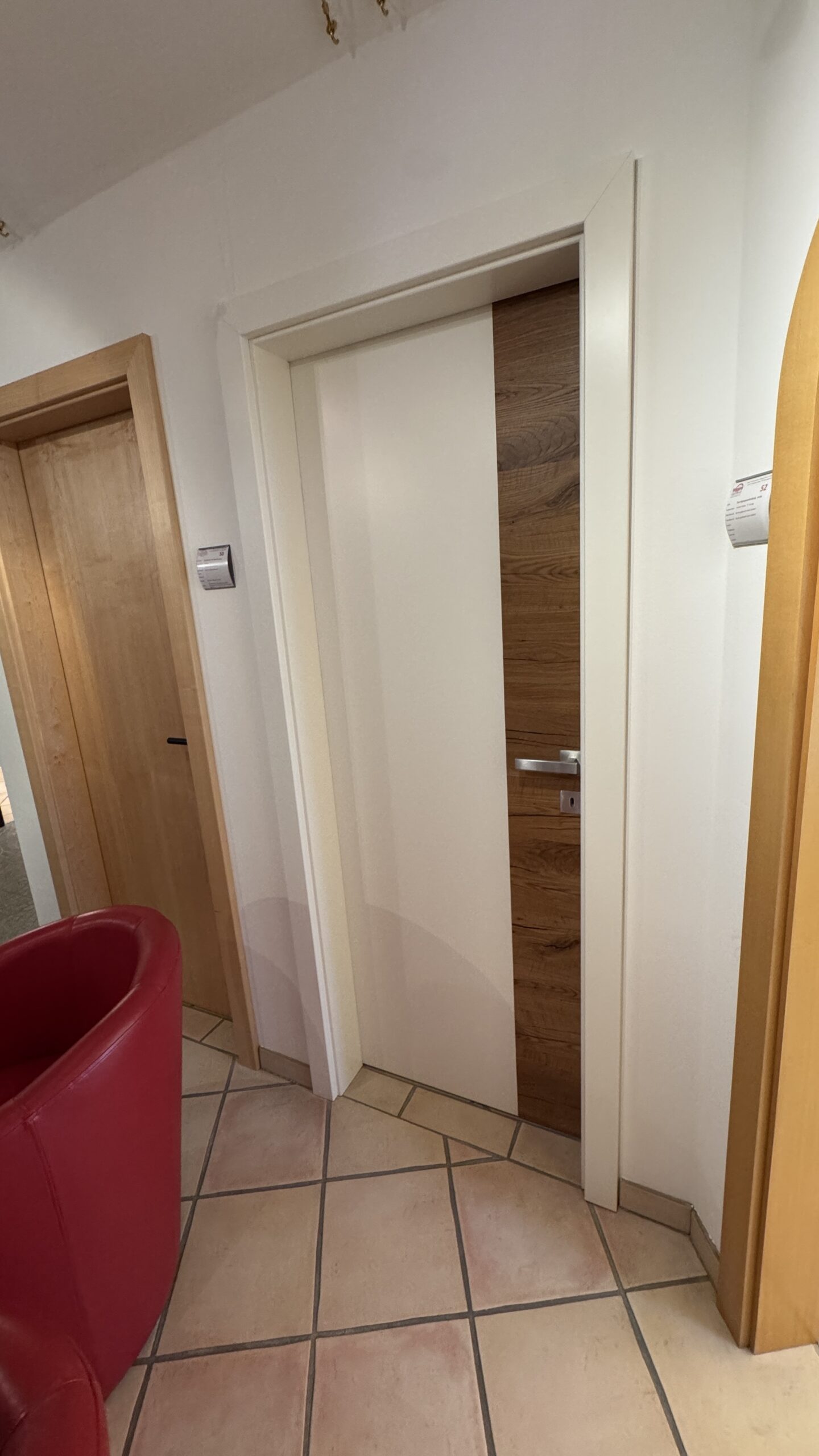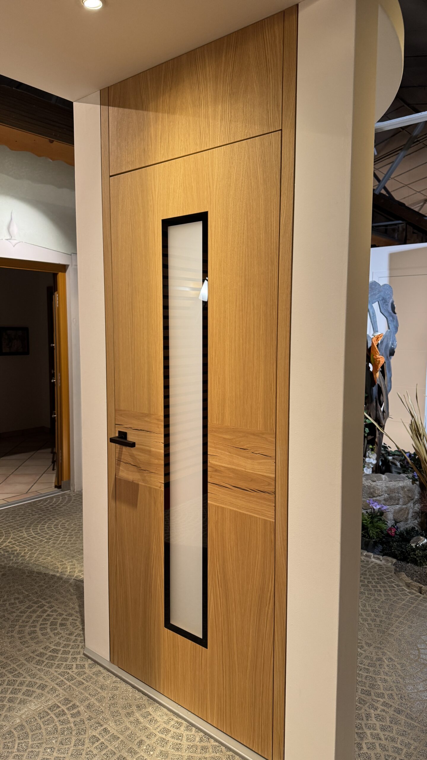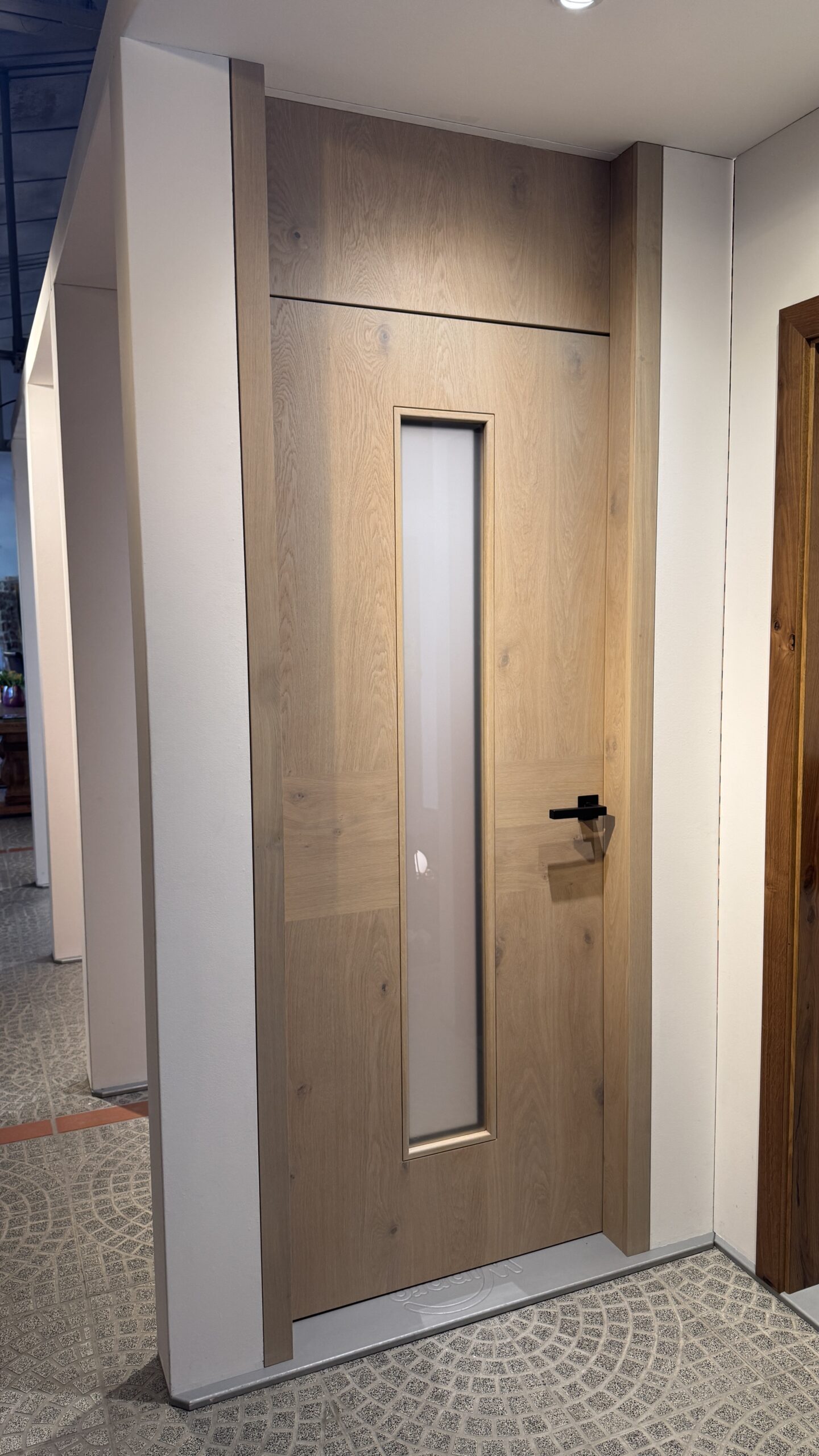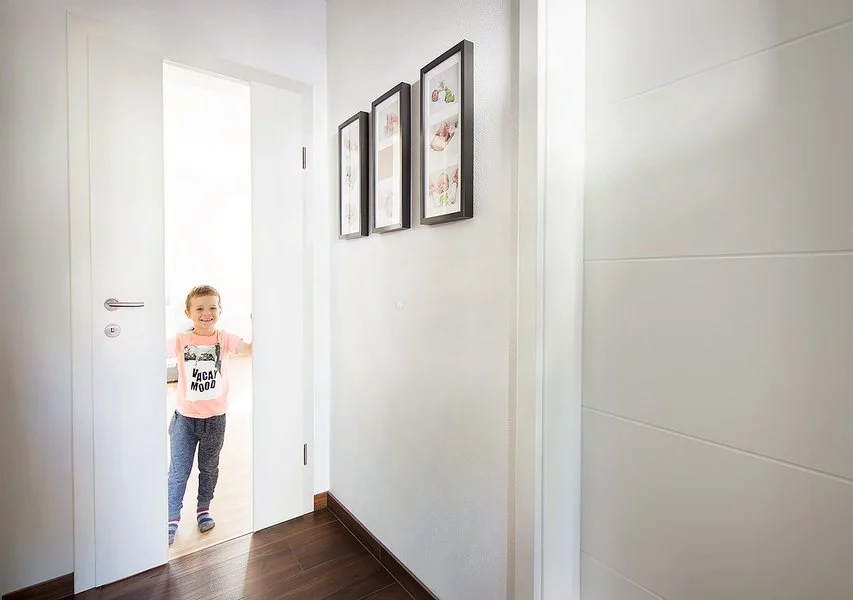Neobvyklé provedení interiérových dveří s průchozím otvorem v plné světlé výšce místnosti. Takovéto dveře v interiéru navozují vyšší míru luxusu a krásně propojují jednotlivé místnosti.