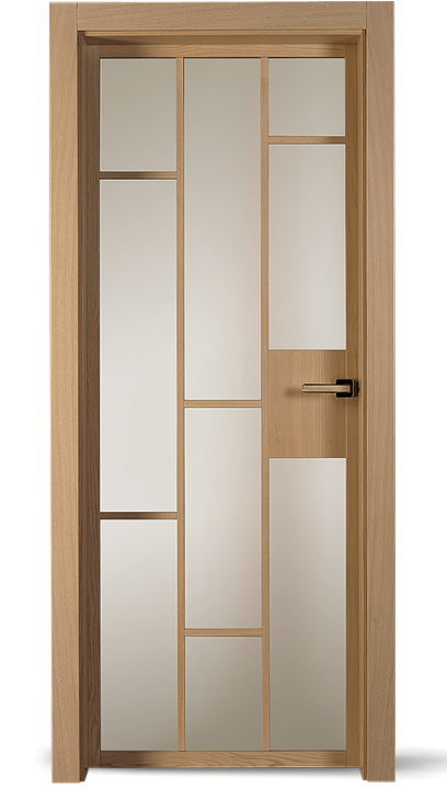 Realizace interiérových dveří PRÜM – Světlý dub, tmavý dub a celoskleněné