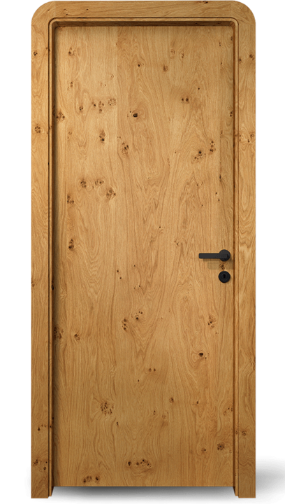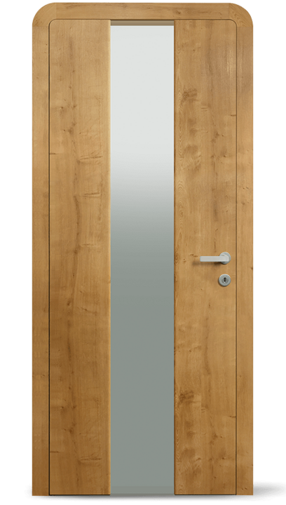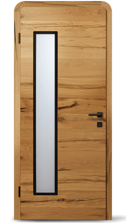 Tento model dveří svým jemně zakřiveným stylem nastavuje nová měřítka z hlediska designu a funkčnosti. Hladké masivní dveřní křídlo a zárubeň ve vysoce kvalitním provedení s podélnou dýhou nebo neprůhledně lakovaným povrchem tvoří základ elegantního vzhledu. Zaoblené rohy dodávají dveřím harmonický vzhled a vytvářejí příjemnou atmosféru.