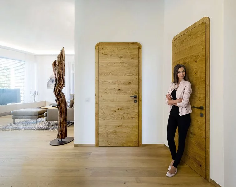 Tento model dveří svým jemně zakřiveným stylem nastavuje nová měřítka z hlediska designu a funkčnosti. Hladké masivní dveřní křídlo a zárubeň ve vysoce kvalitním provedení s podélnou dýhou nebo neprůhledně lakovaným povrchem tvoří základ elegantního vzhledu.
