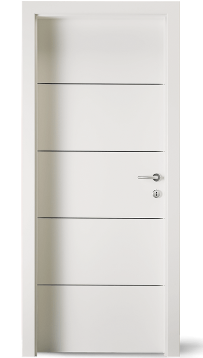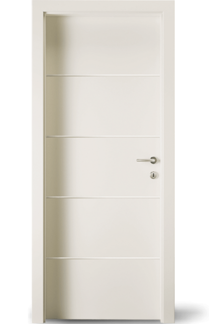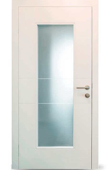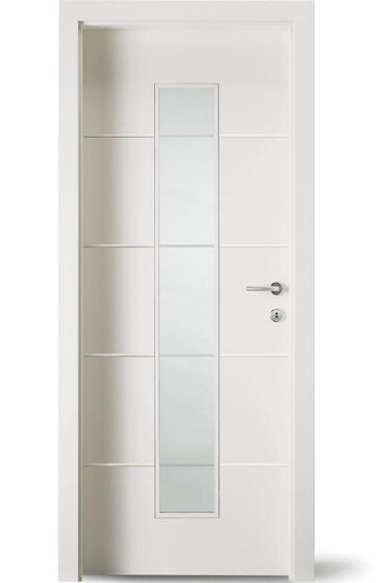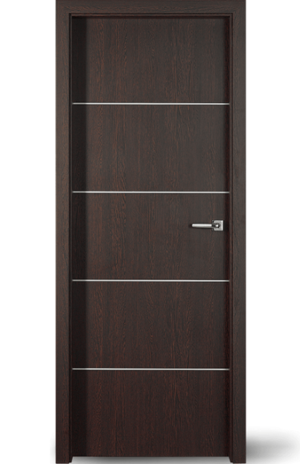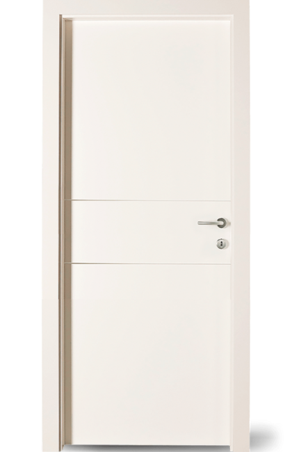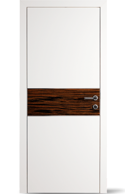 Směr dýhy modelu dveří Zoisit je vertikální. Zoisit nabízí četné možnosti, s liniemi v chromu, ořechu nebo dubu v kombinaci s dřevěnou dýhou, lakované RAL/NCS nebo jiné kvality Wippro.
