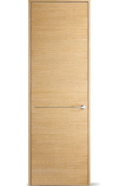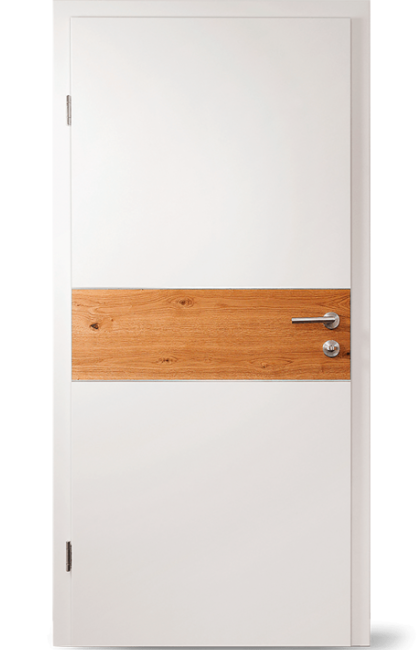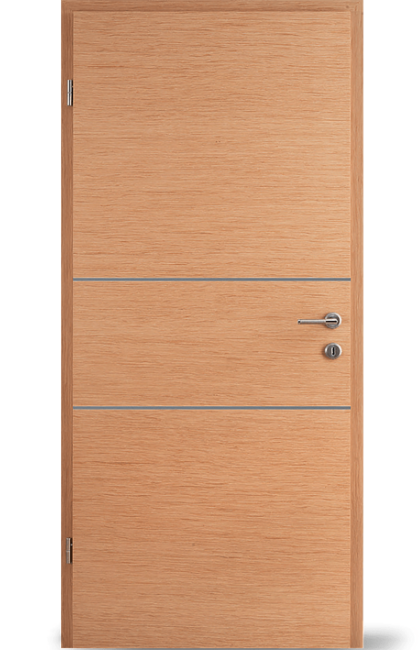 Designové dýhové dveře Fuchsit s vybraným povrchem a integrovaným kvalitním překladem v chromu nebo volitelně v dubu či ořechu. K dispozici jako standardní křížově dýhovaná v dubu, sukovitém dubu nebo mnoha dalších dřevinách. Dveřní křídlo je vysoce dýhované.
