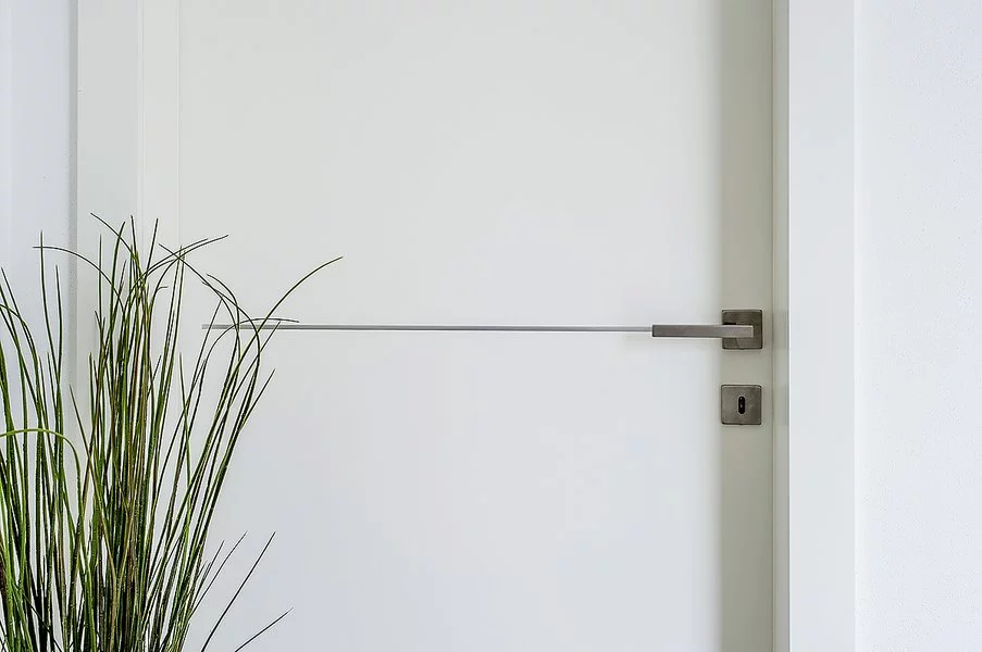 Neobvyklé provedení interiérových dveří s průchozím otvorem v plné světlé výšce místnosti. Takovéto dveře v interiéru navozují vyšší míru luxusu a krásně propojují jednotlivé místnosti.