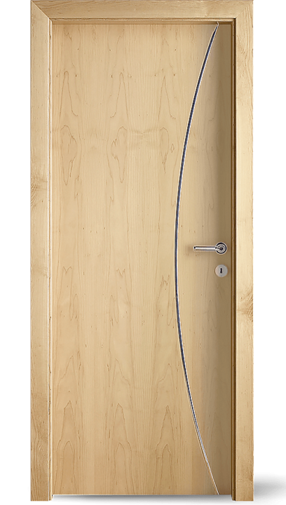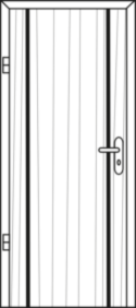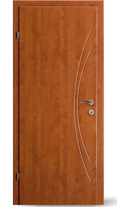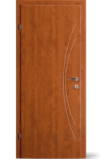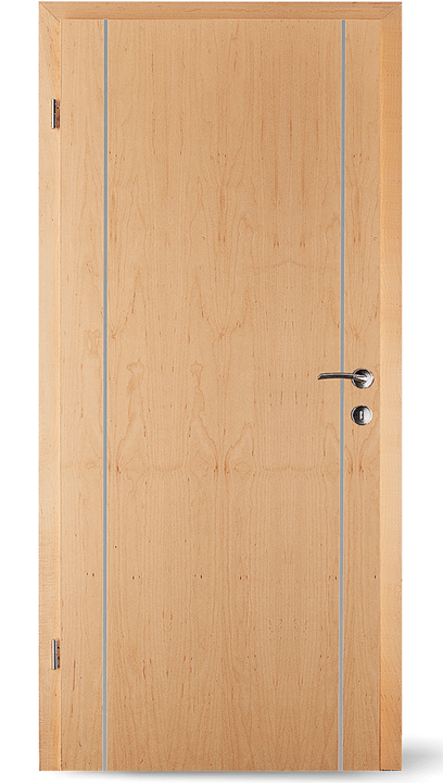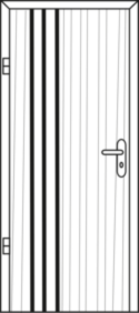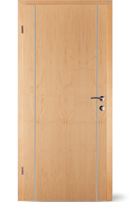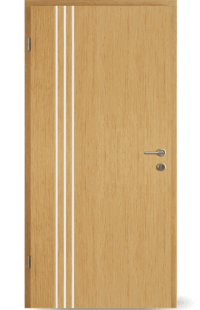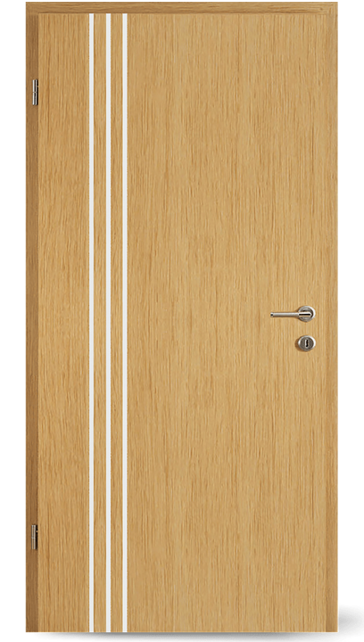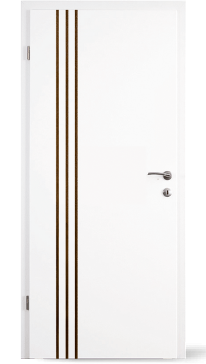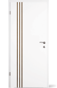 Vertikálně dýhované dveře se třemi liniemi. Drážky standardní řady jsou vyhotoveny v chromu, volitelně také v ořechu nebo dubu nebo jako Iolith R s drážkou.