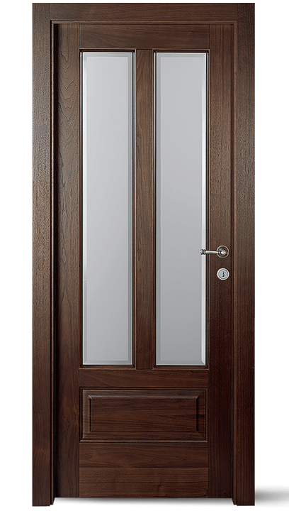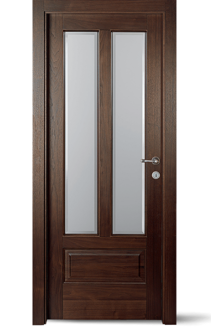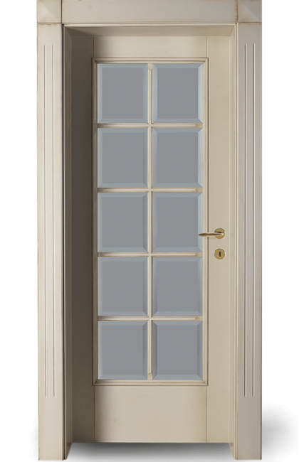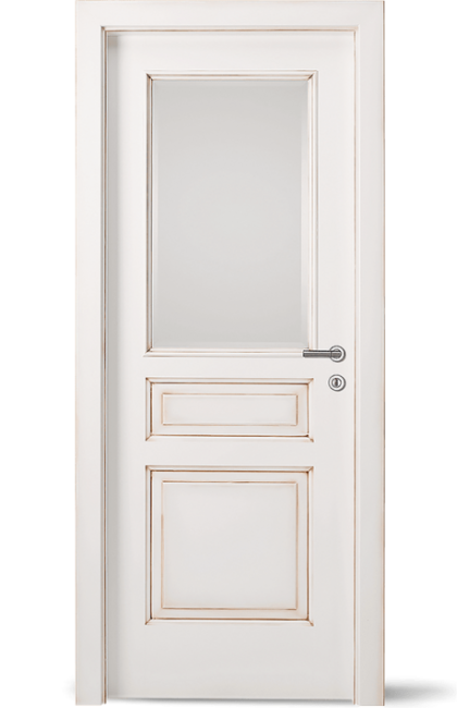 Rámová konstrukce s pevnou podpěrou a masivním lemováním, vícevrstvě lepená v nejlepší kvalitě. Dveře vhodné pro renovaci starých budov nebo pro stylové novostavby s mnoha možnostmi a také možnými aplikacemi garnýží a zárubní. Zušlechtěno fasetovaným, elegantním čirým nebo satinovaným sklem, rámy v klasické bílé nebo se zvláště kvalitním patinovaným povrchem.