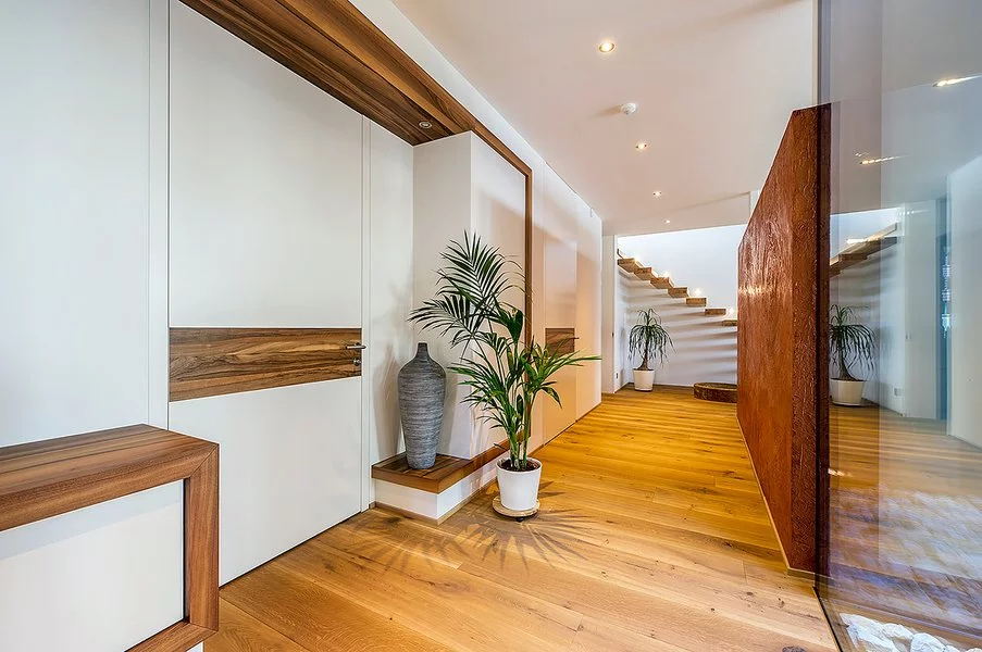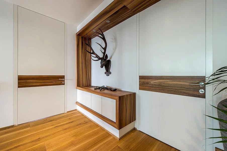 Realizace interiérových dveří PRÜM – Světlý dub, tmavý dub a celoskleněné