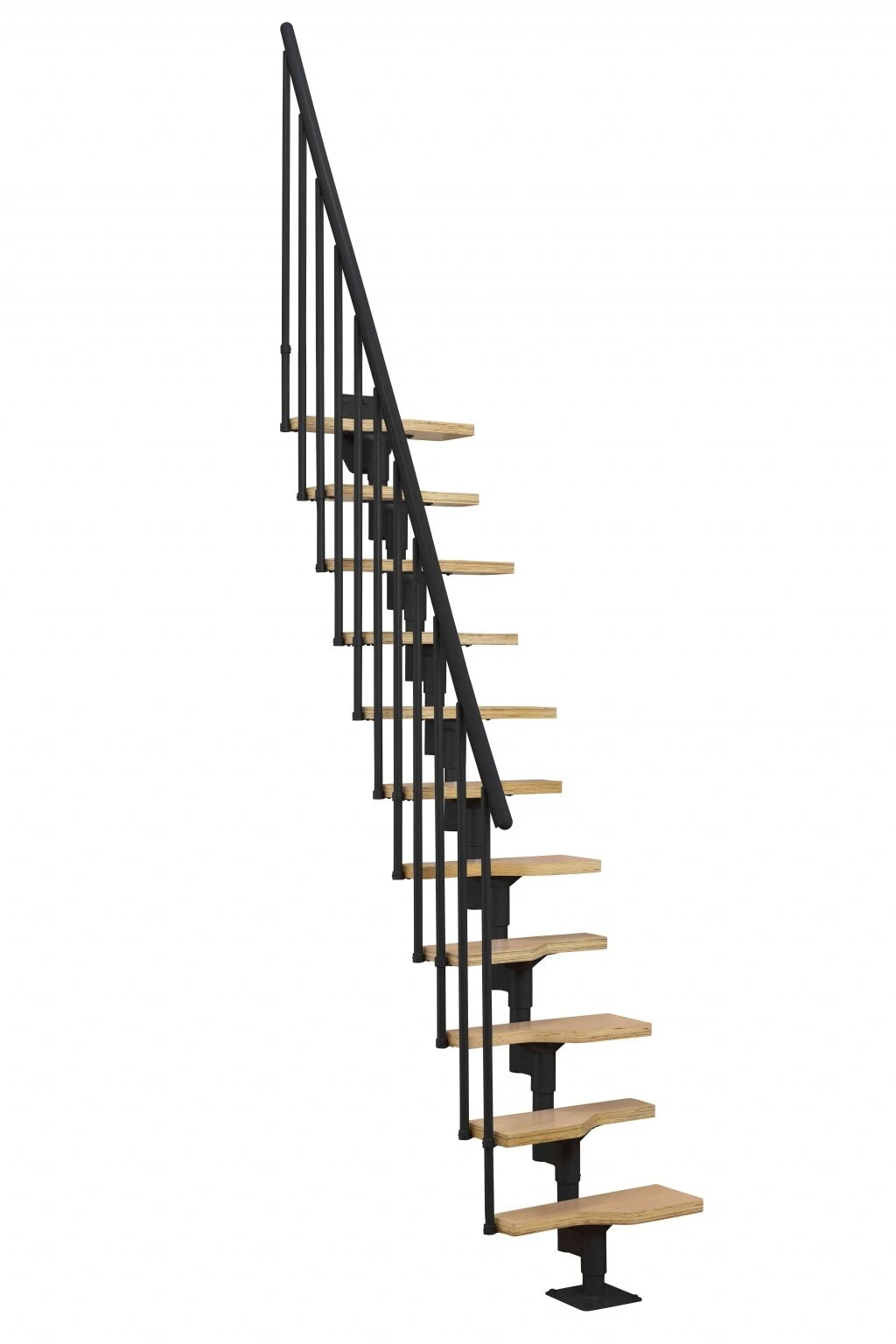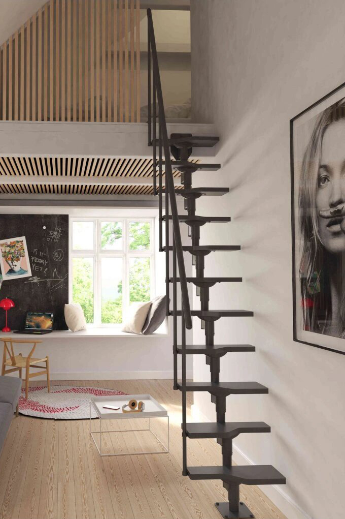 Zubaticová schodnice dodává schodišti dynamický vzhled a kombinuje se s různými materiály, jako je dřevo nebo sklo. Hodí se do rodinných domů nebo bytů.