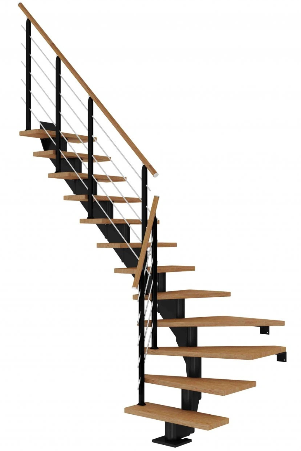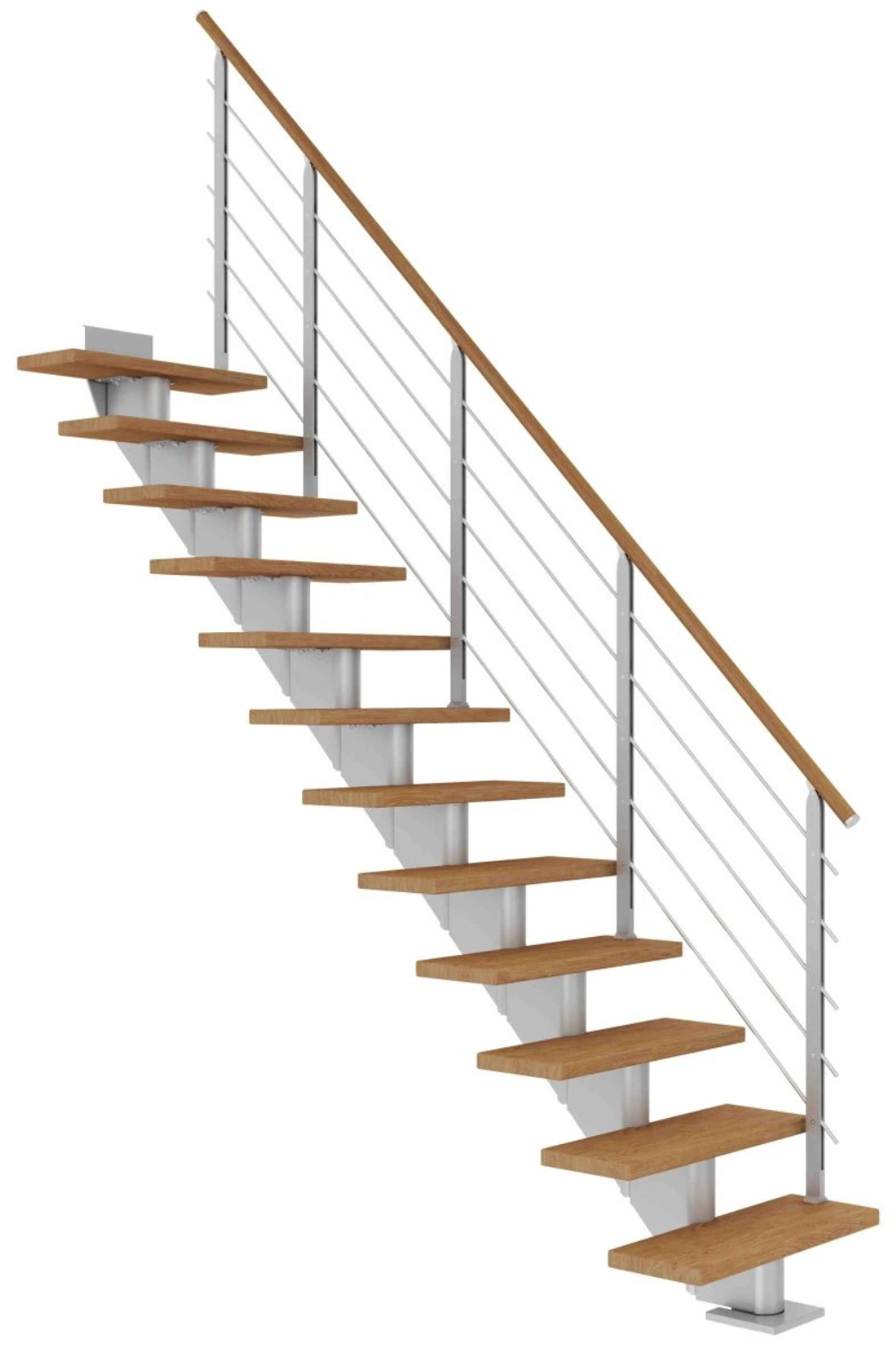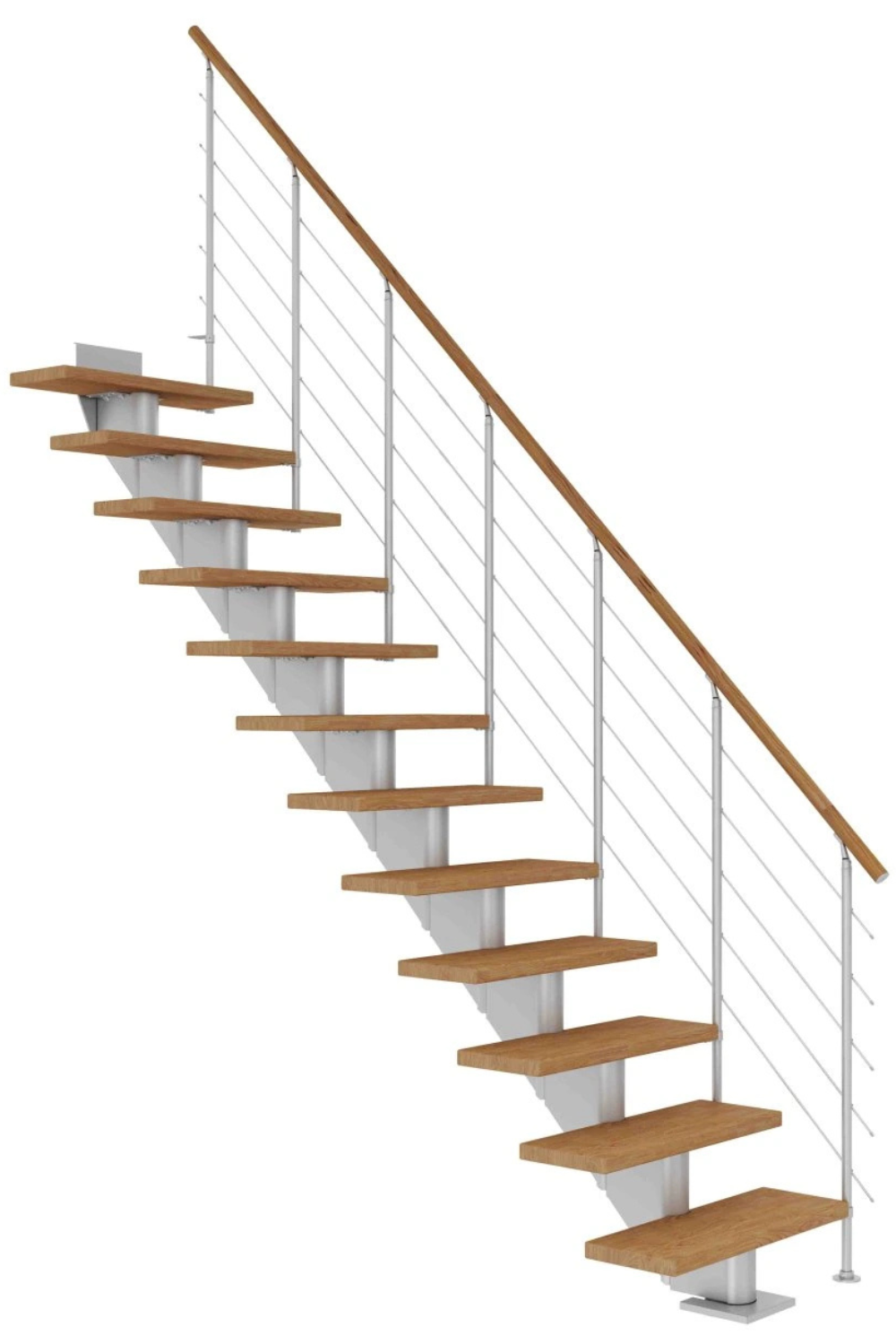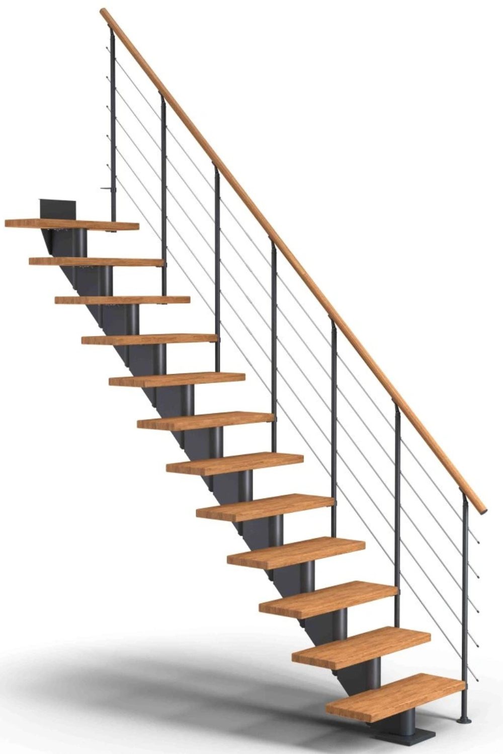 Zubaticová schodnice dodává schodišti dynamický vzhled a kombinuje se s různými materiály, jako je dřevo nebo sklo. Hodí se do rodinných domů nebo bytů.