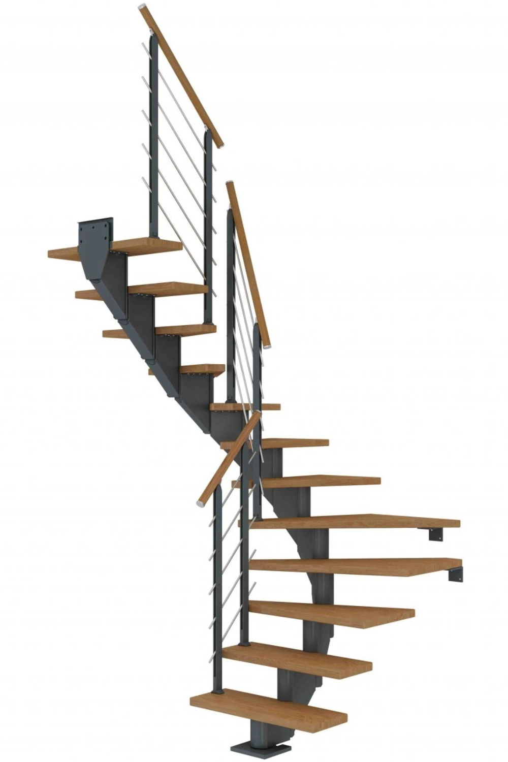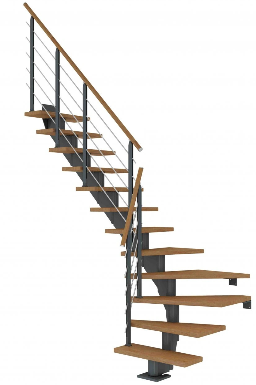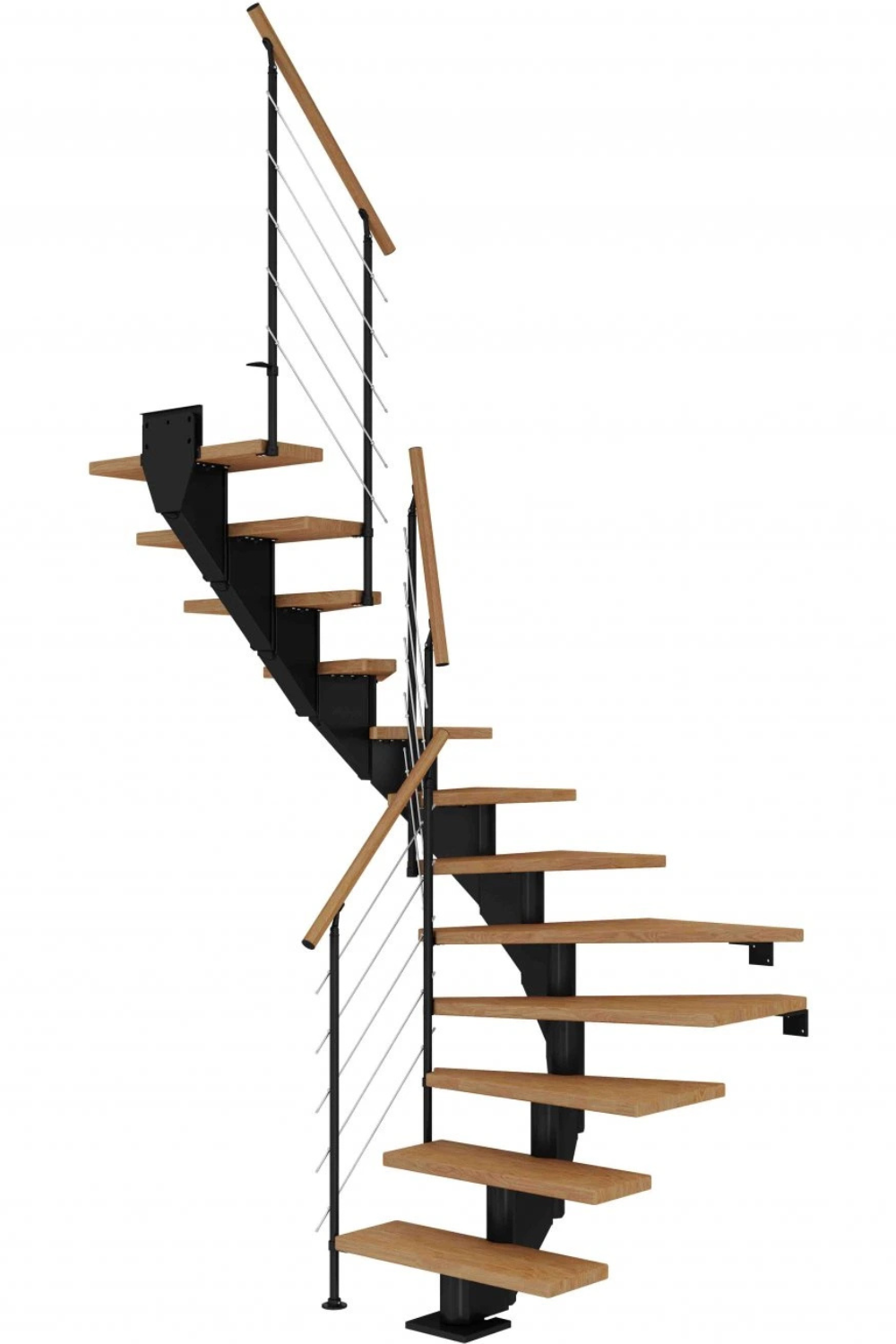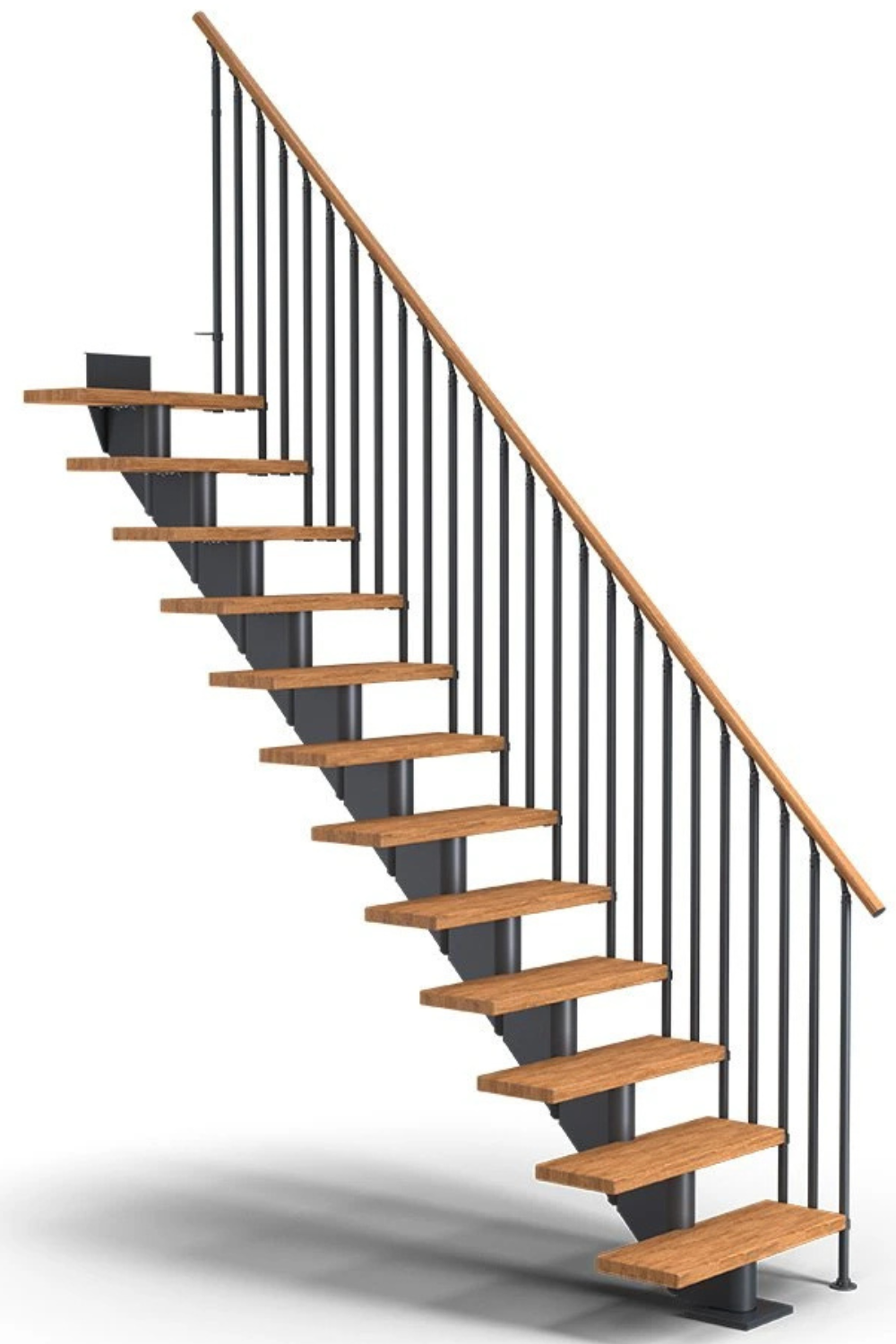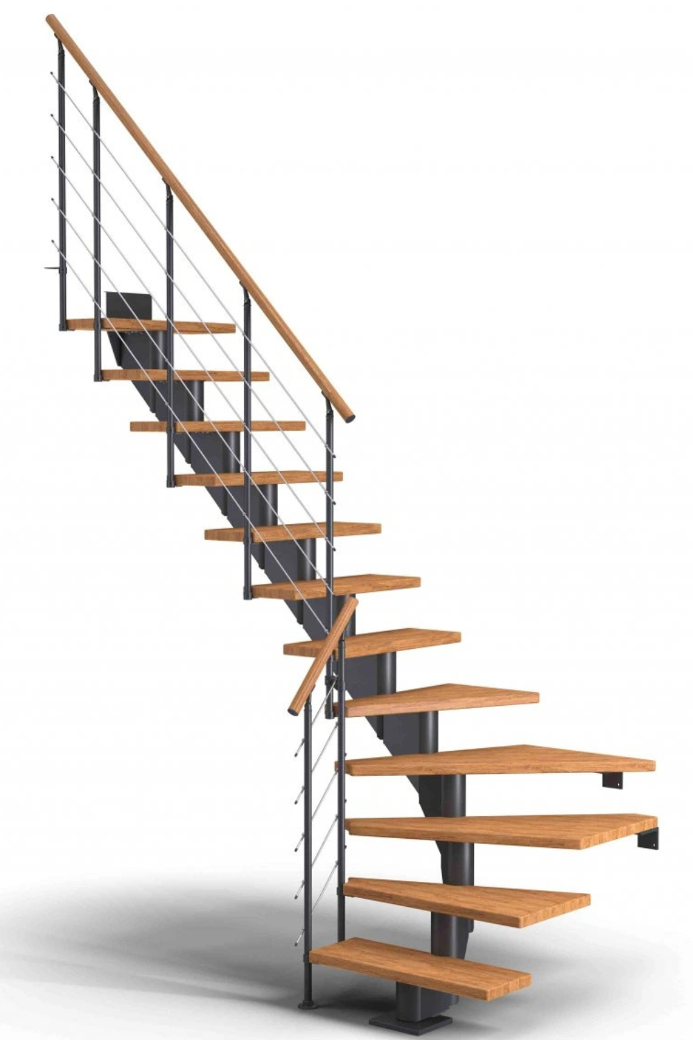 Zubaticová schodnice dodává schodišti dynamický vzhled a kombinuje se s různými materiály, jako je dřevo nebo sklo. Hodí se do rodinných domů nebo bytů.