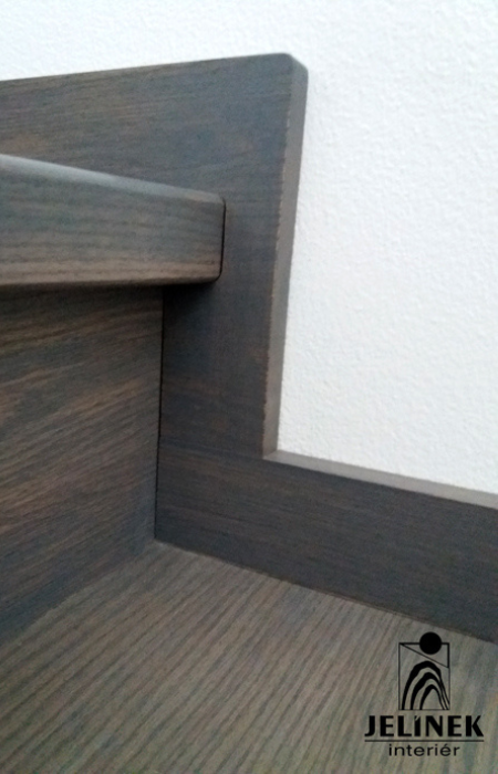 Samonosné schodiště vyrobené z masivního buku je v této konkrétní realizaci povrchově upraveno tónovacím olejem do odstínu WENGÉ, pro navození moderní nálady.