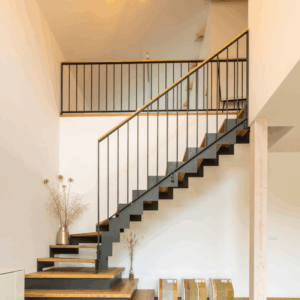 Samonosné schodiště s prutovým zábradlím je ideální pro moderní interiéry, kde chcete vytvořit vzdušný a otevřený prostor. Prutové zábradlí propouští světlo a zachovává pocit prostornosti, aniž by obětovalo bezpečnost.