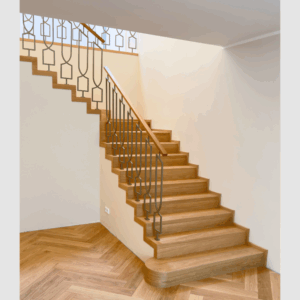 Zábradlí z dubového masivu je ideální pro rodinné domy nebo byty, kde chcete vytvořit teplou a příjemnou atmosféru. Dubové dřevo je odolné a hodí se do prostor s vyšší zátěží, jako jsou chodby nebo obývací pokoje.