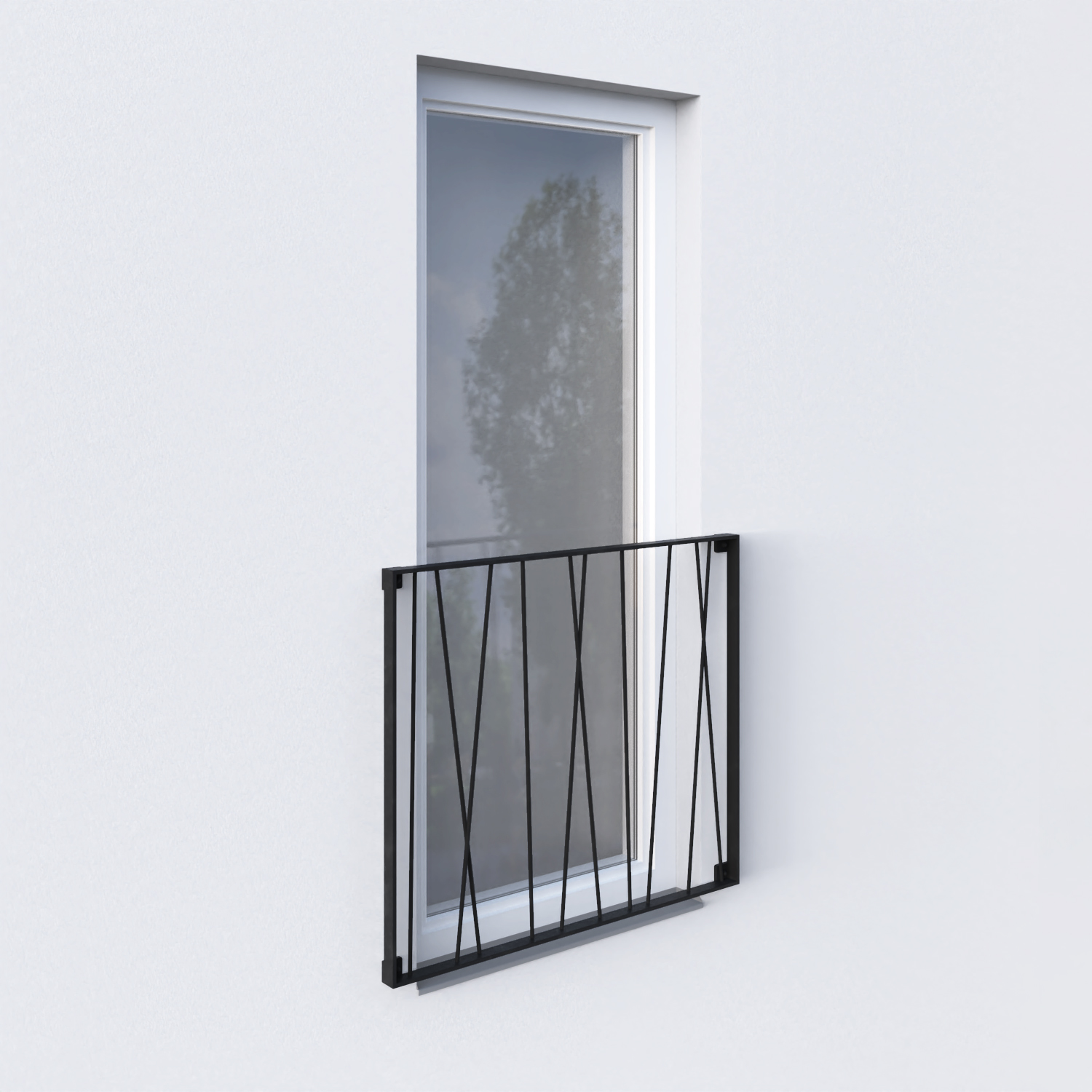 Celokovové ocelové zábradlí s výraznou geometrickou prutovou výplní je ideálním, neotřelým designovým prvkem pro francouzská okna a balkony. Konstrukce je tvořena pevnou ocelí v pásovinovém rámu, což zajišťuje vysokou stabilitu a bezpečnost, a je navržena pro exteriérové použití s vysokou odolností vůči povětrnostním vlivům.