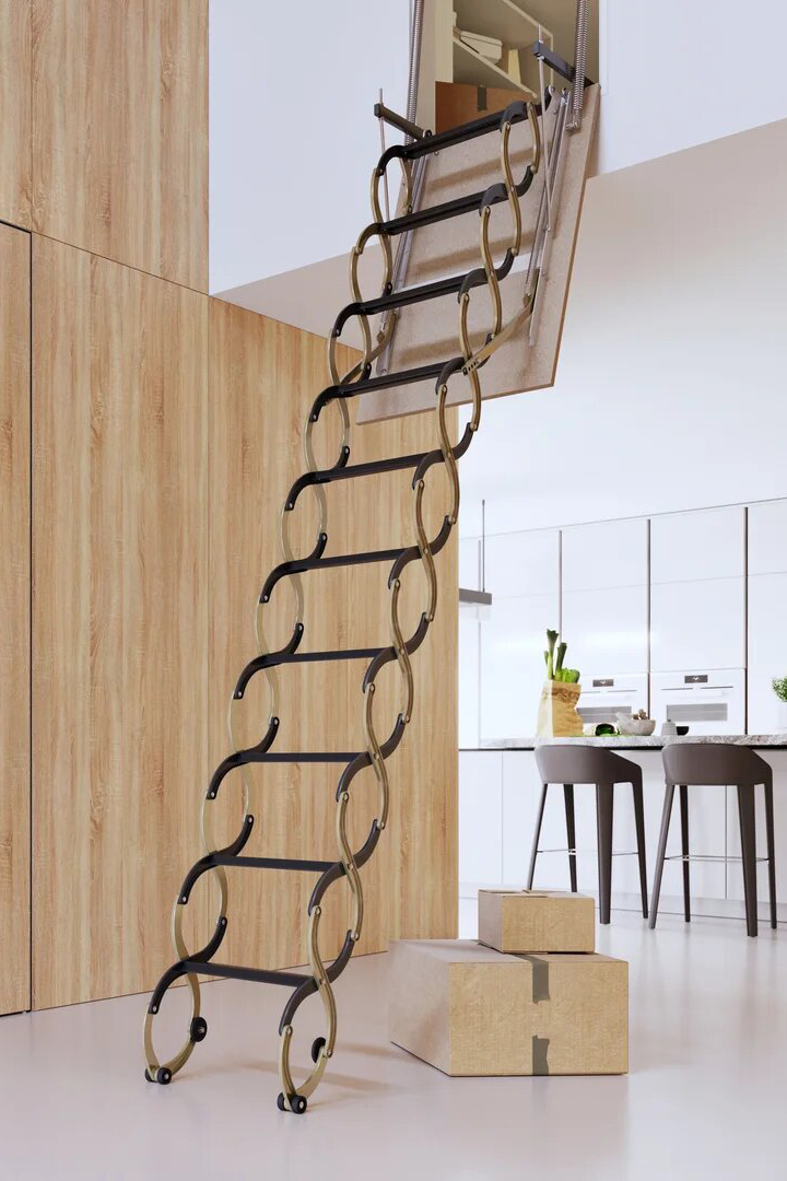 | Popisek výrobku | Stahovací půdní schody VERTICALE s jednoduchým dřevotřískovým víkem pro zabudování do stěny |