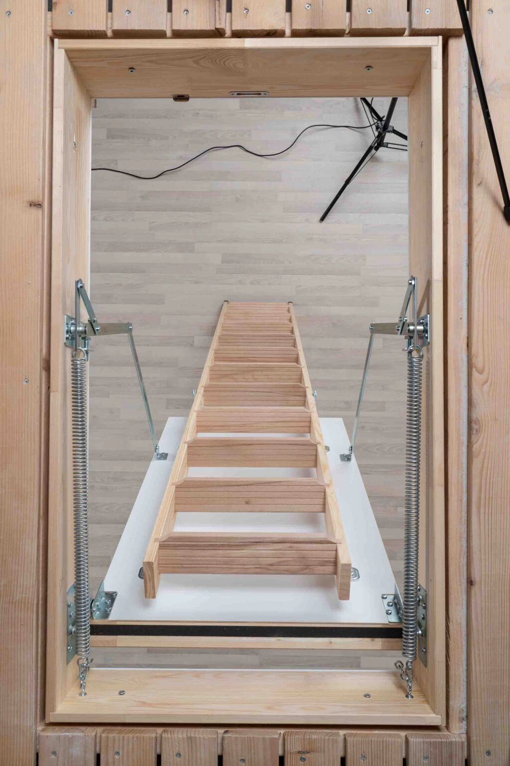 - 3-dílné / 4-dílné skládací schody nevyžadují žádný prostor pro uložení žebříku v prostoru půdy